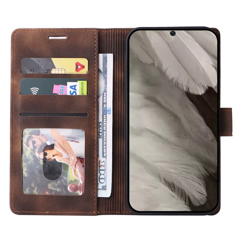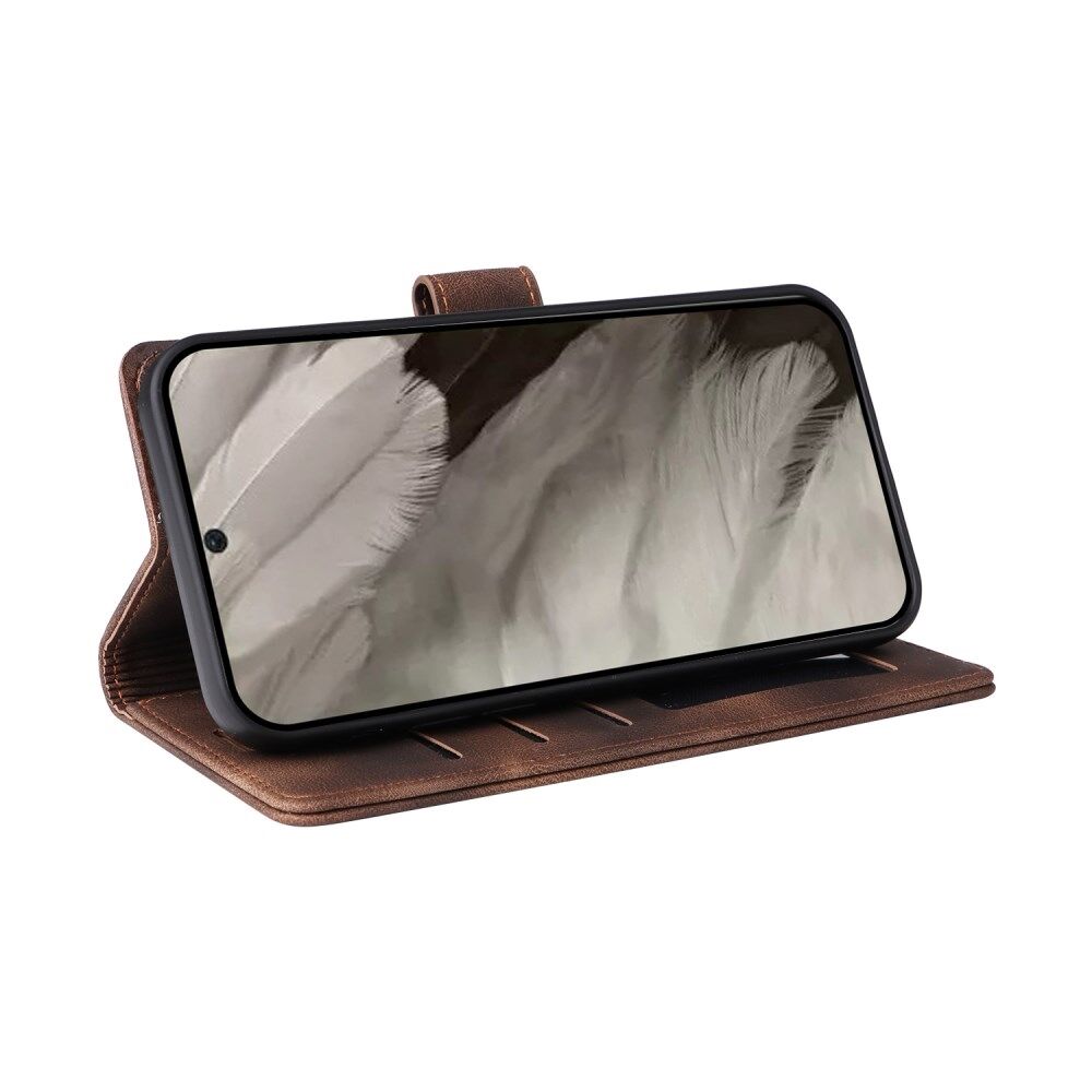 007 Series Portemonnee Leren Hoesje voor Google Pixel 7a, Hoesje met Huidachtig Gevoel, Flip Folio Stand Telefoonhoesje - Bruin