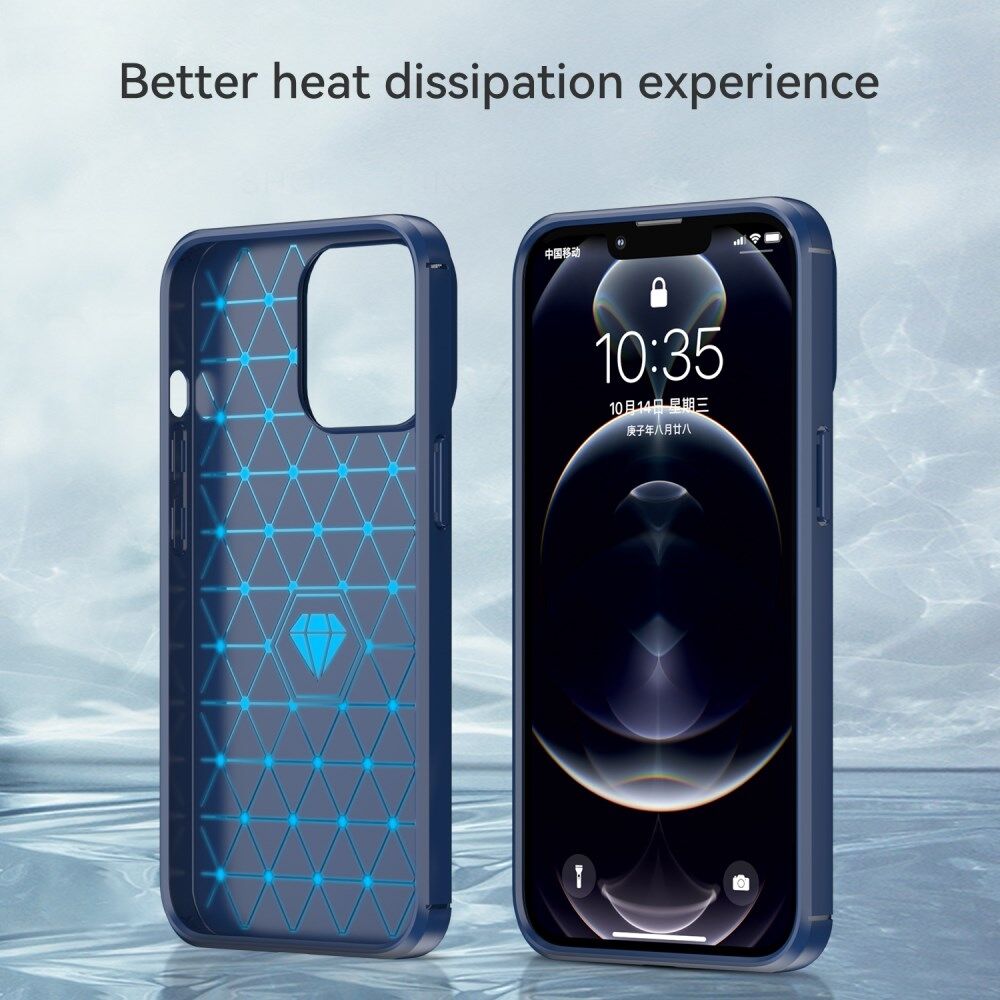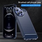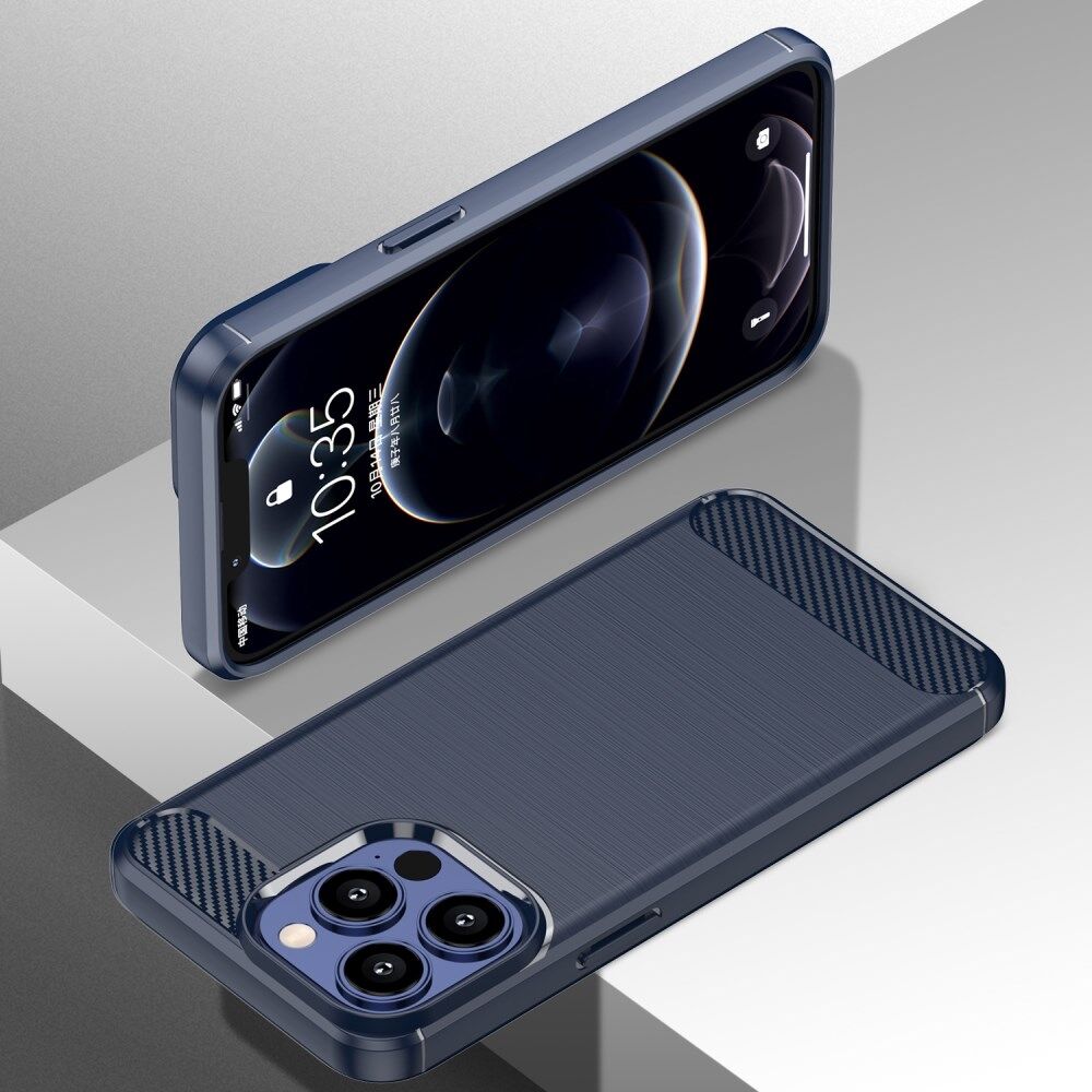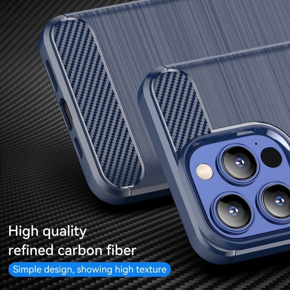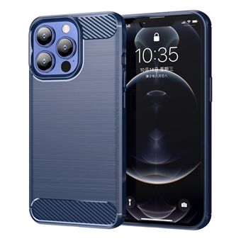 1.8mm Koolstofvezel Geborstelde Textuur Flexibele TPU Anti-drop Telefoon Achterkant Cover voor iPhone 13 Pro - Blauw