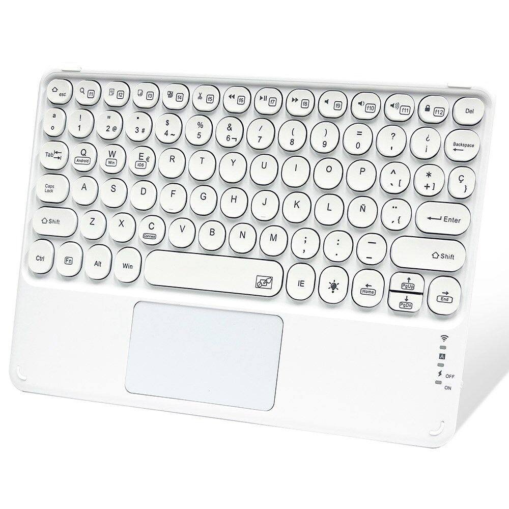 10 inch draagbaar draadloos Bluetooth-toetsenbord met 7 backlit/touchpad voor Android/iOS/Windows Round Keycap Slim draadloos toetsenbord - Spaans