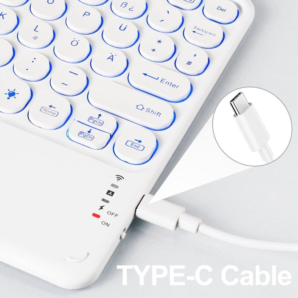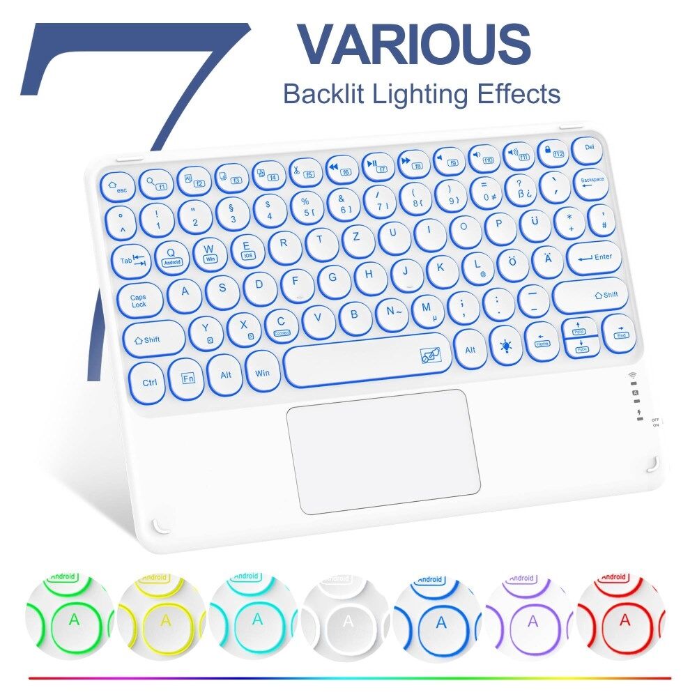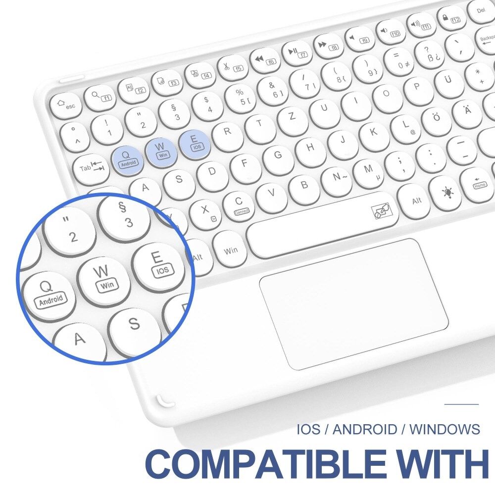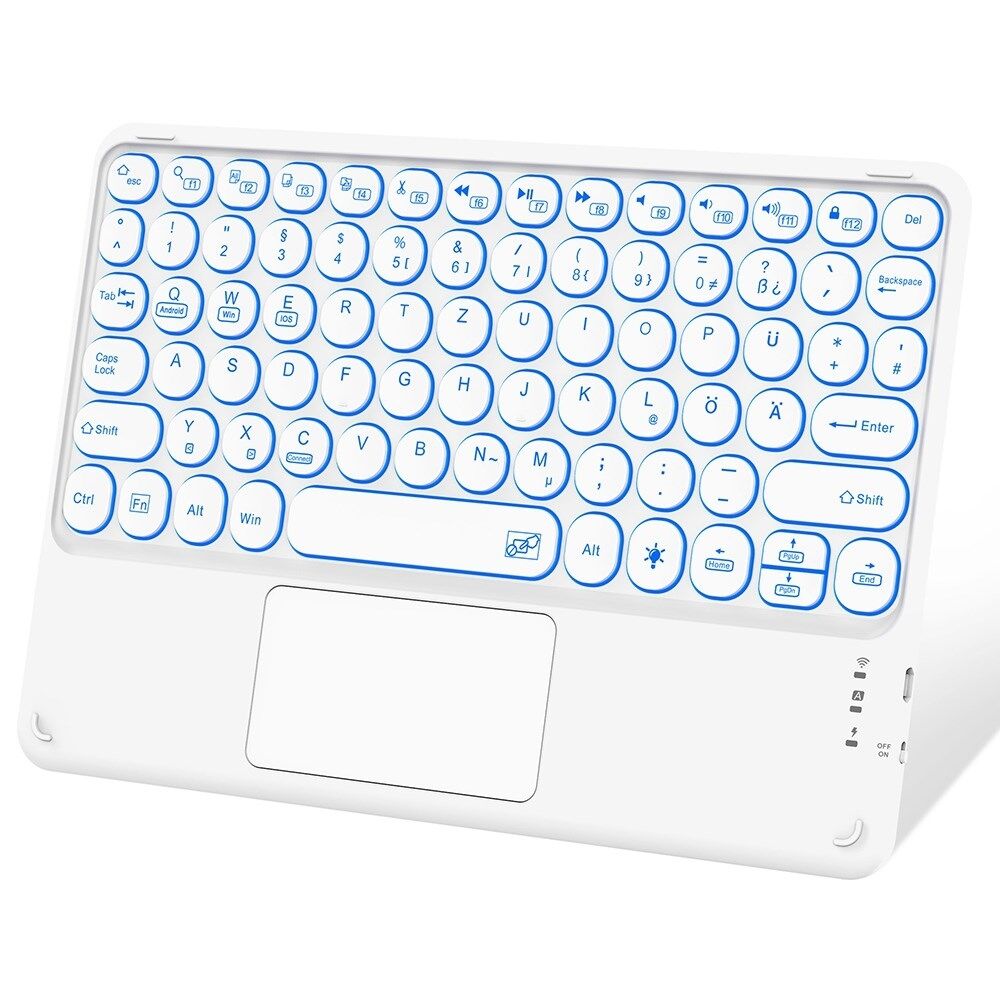 10 inch Draagbaar Draadloos Bluetooth Toetsenbord met 7 Backlit/Touchpad voor Android/iOS/Windows Ronde Keycap Slanke Draadloze Toetsenbord