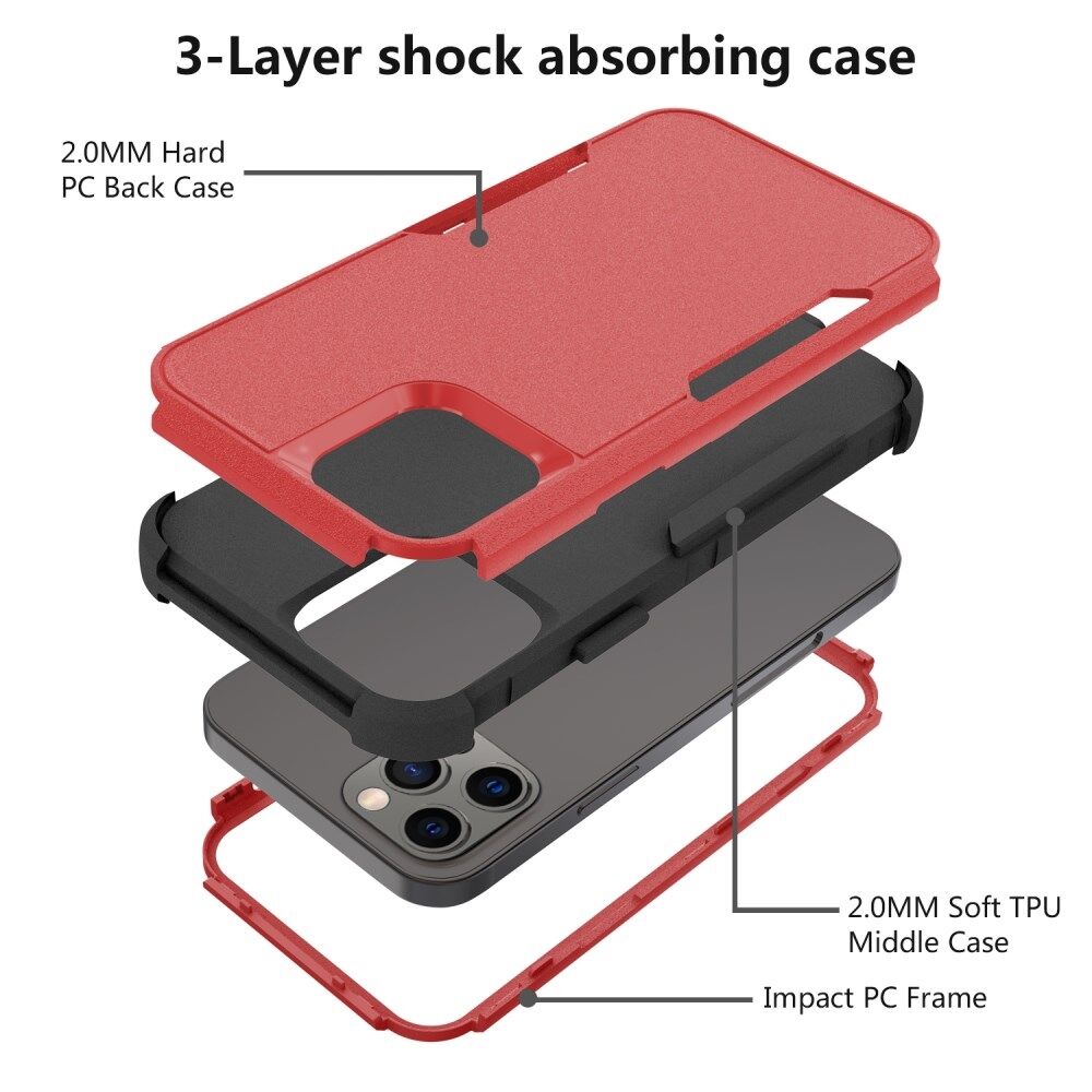 3-in-1 afneembare mobiele telefoon anti-krasbeschermer schokbestendige hoes stofdichte TPU + pc-telefoonhoes voor iPhone 13 Pro - rood / zwart