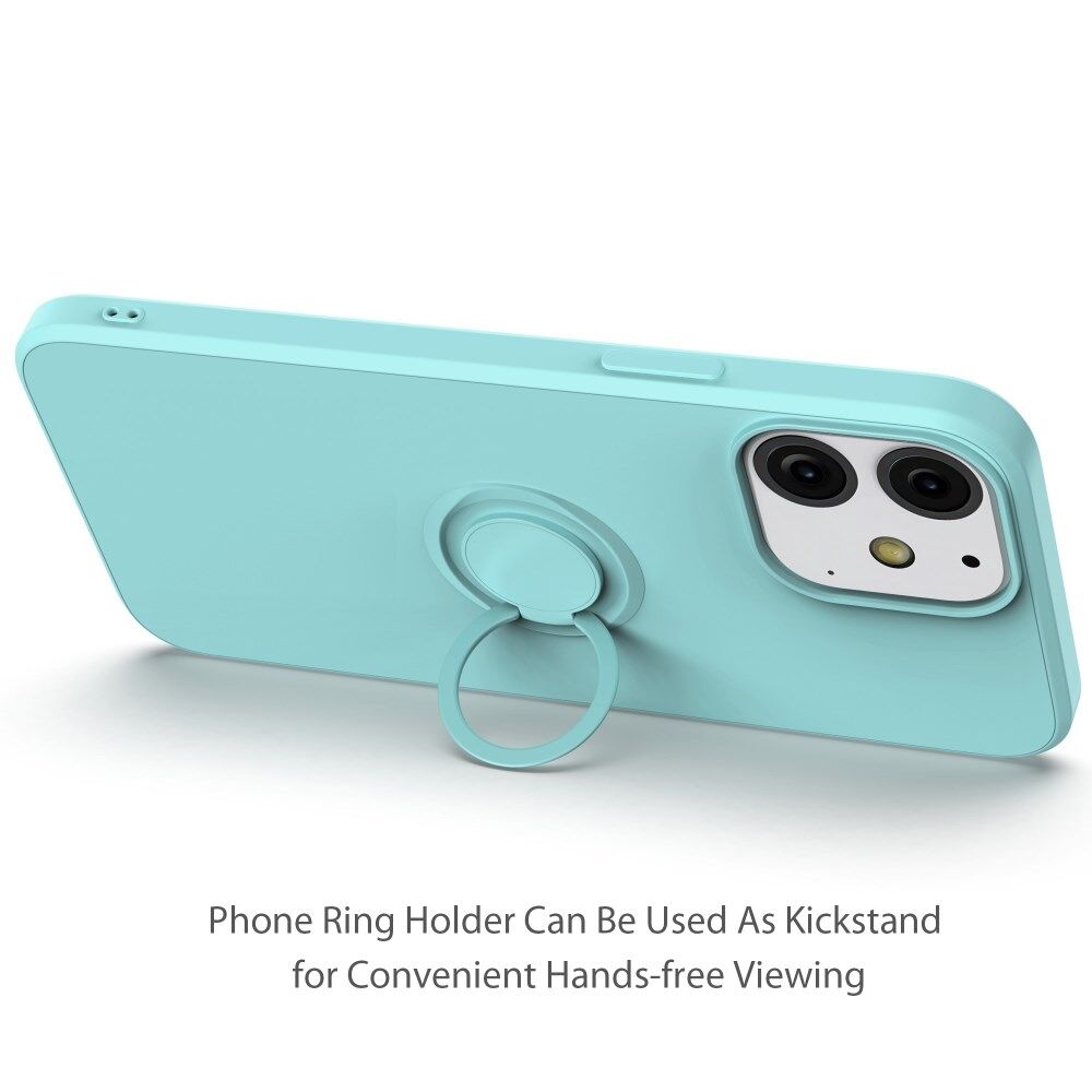 360° roterende Ring ondersteuning ontwerp valbestendig milieuvriendelijke vloeibare siliconen telefoon beschermhoes shell met handige riem voor iPhone 13 mini - wijnrood