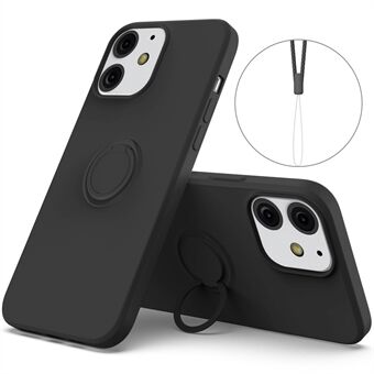360° roterende Ring ondersteuning ontwerp valbestendig milieuvriendelijke vloeibare siliconen telefoon beschermhoes shell met handige riem voor iPhone 13 mini 5.4 inch - zwart