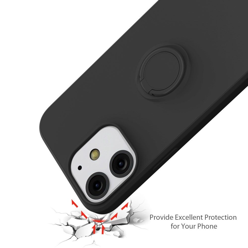 360 ° roterende Ring ontwerp valbestendig milieuvriendelijk vloeibaar siliconen telefoon beschermhoes shell met handige riem voor iPhone 13 mini - zwart