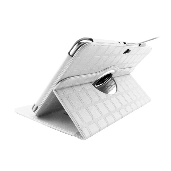 360 graden draaiende kast. - De tablet wordt in de hoes geschoven. Geeft ook een beter overzicht van het scherm.