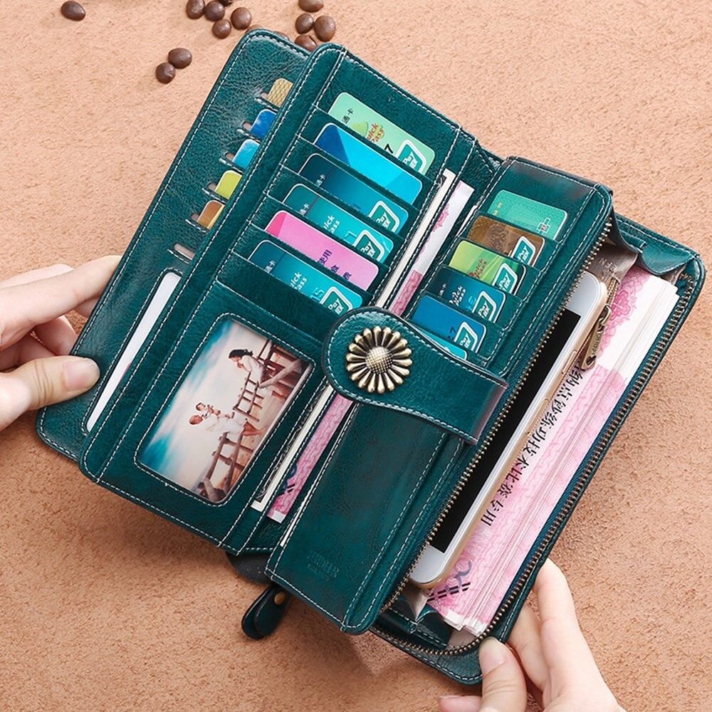 5162 Echt Rundleer Vrouwen Portemonnee Grote Capaciteit Geld Portemonnee Dame Clutch Bag Polsbandje Handtas met Handriem