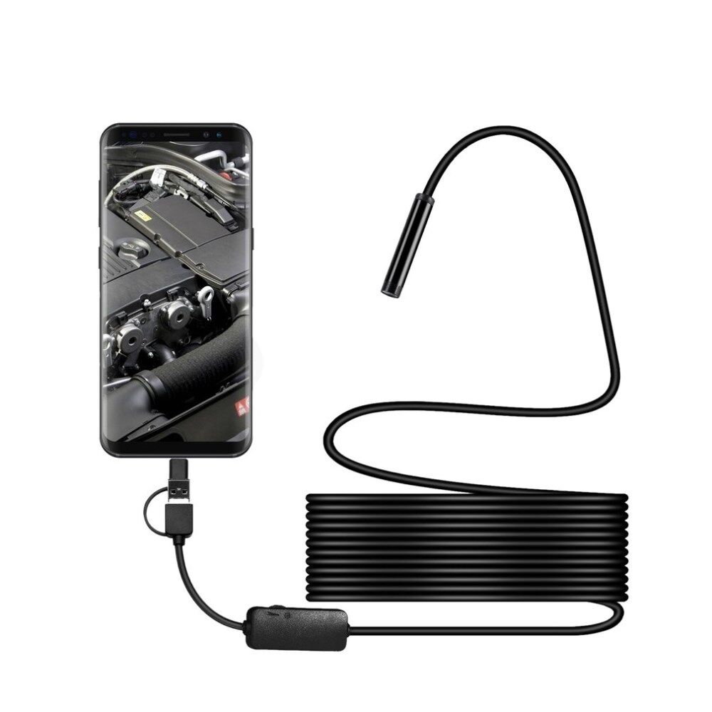 8MM Micro USB/Type-C/USB 3-in-1 HD Endoscoop Waterdichte Borescope Buiscamera met 8 witte LED-lampjes - 5m harde draad
