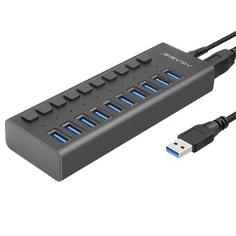ACASIS HS-710MG 10 Poorten USB3.0 Splitter 5Gbps Hoge Snelheid Transmissie Oplaad Dock USB Hub met Onafhankelijke Schakelaar - Zwart/EU Plug
