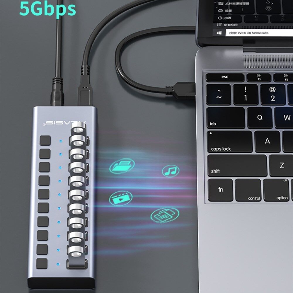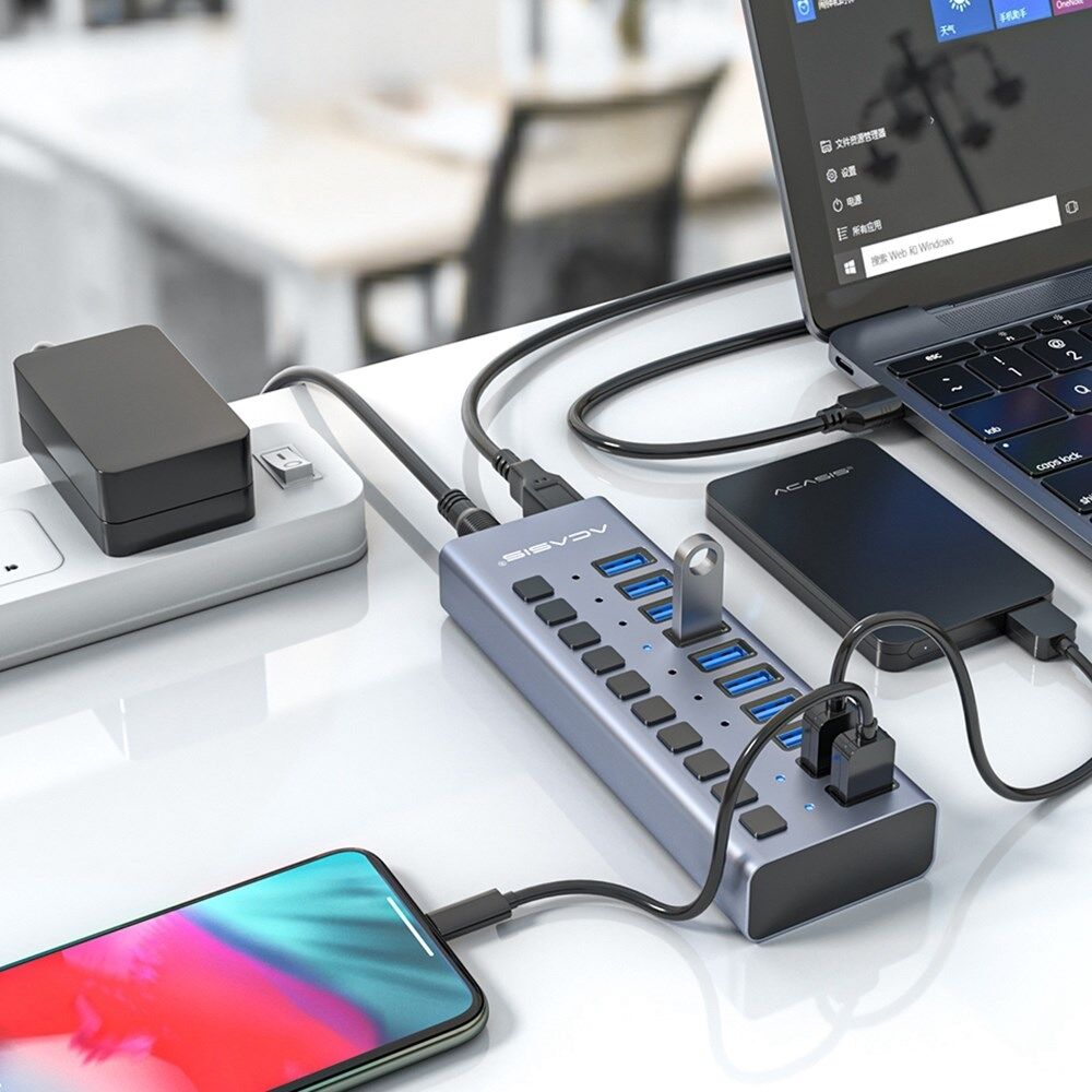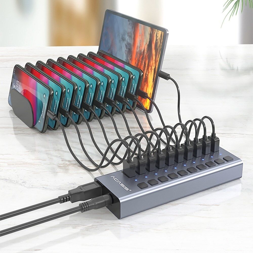 ACASIS HS-710MG 10 Poorten USB3.0 Splitter 5Gbps Hoge Snelheid Transmissie Oplaad Dock USB Hub met Onafhankelijke Schakelaar
