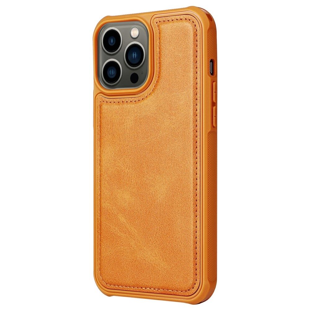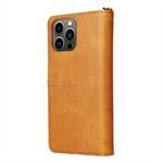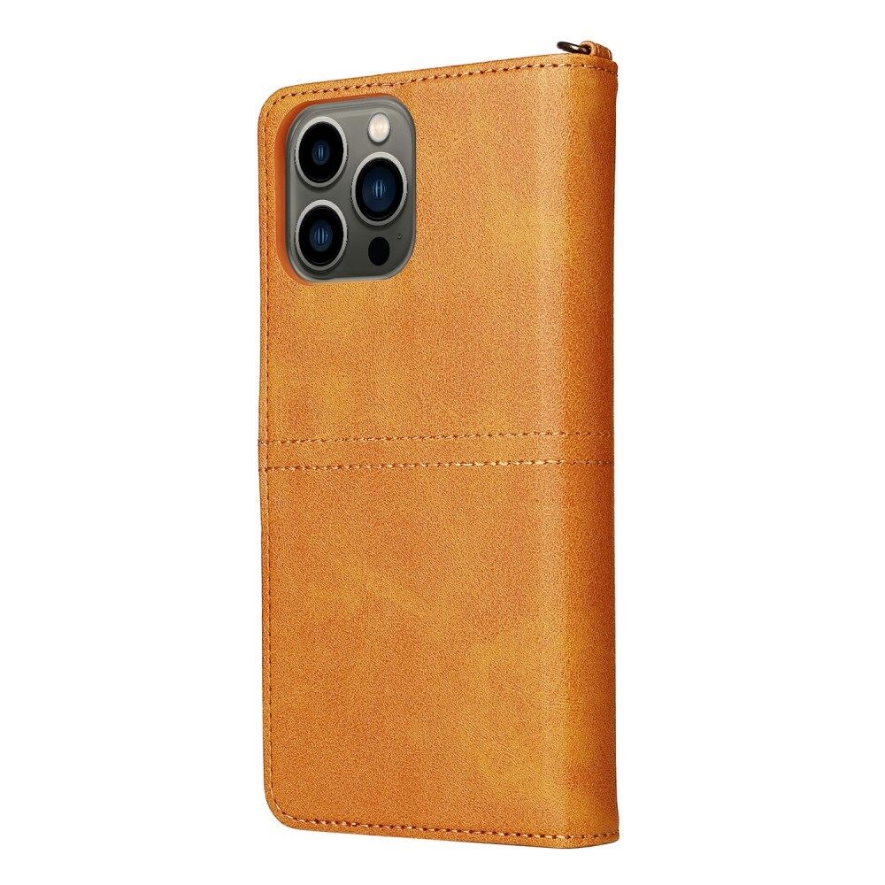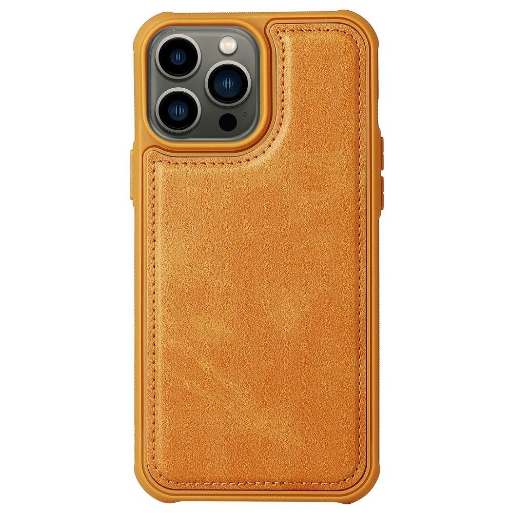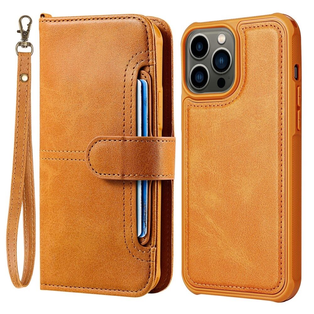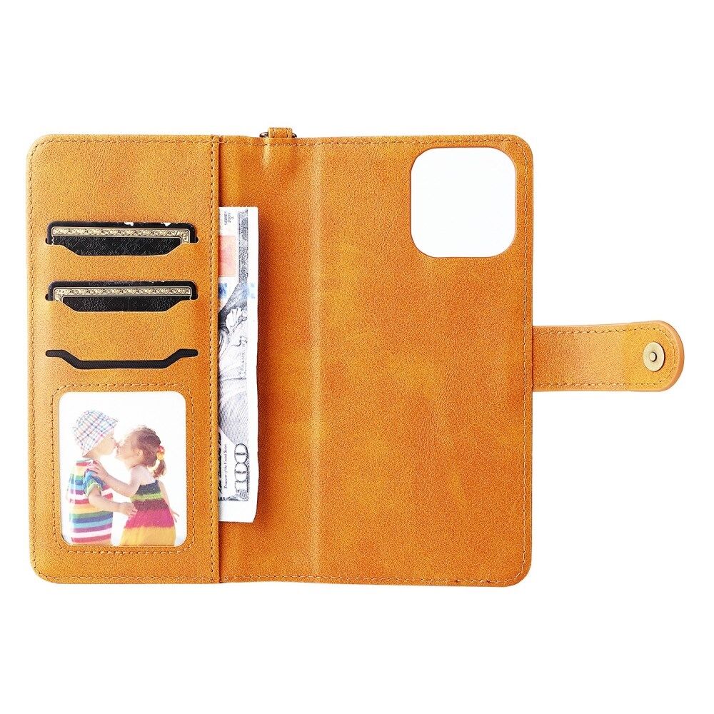 Afneembare 2-in-1 anti-drop knop sluiting polsband meerdere kaartsleuven ontwerp Stand PU lederen telefoonhoes voor iPhone 13 Pro - geel