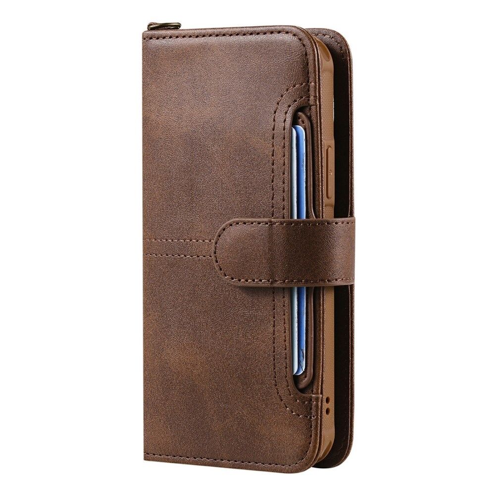 Afneembare 2-in-1 schokbestendige krasbestendige knopsluiting Handige riem Meerdere kaartsleuven Stand PU lederen telefoonhoes voor iPhone 13 mini - bruin