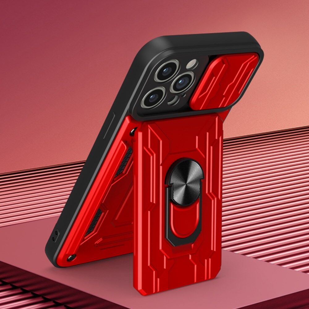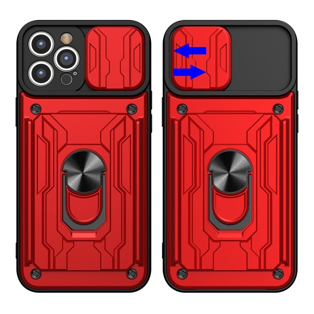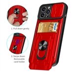 Afneembare kaartsleuf Hard PC + Soft TPU Telefoonhoesje Kickstand Hybride hoesje met cameraschuifhoes voor iPhone 13 Pro 6.1 inch - Rood
