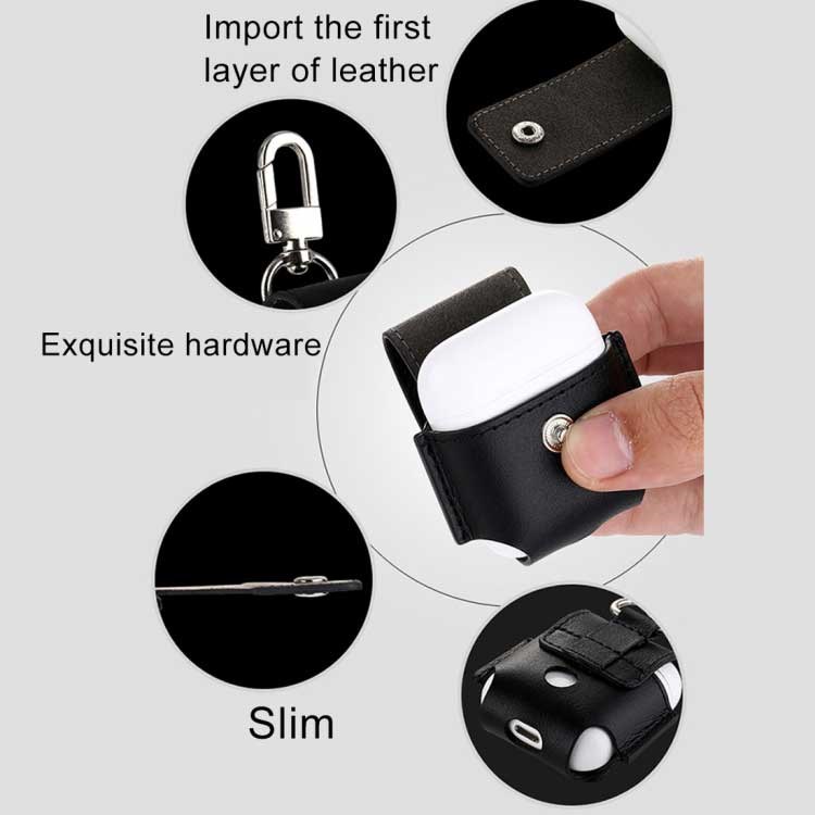 De AirPods-hoes heeft een veilige knoopsluiting en een praktische karabijnhaak waarmee je hem aan een rugzak, tas of sleutelhanger kunt bevestigen.