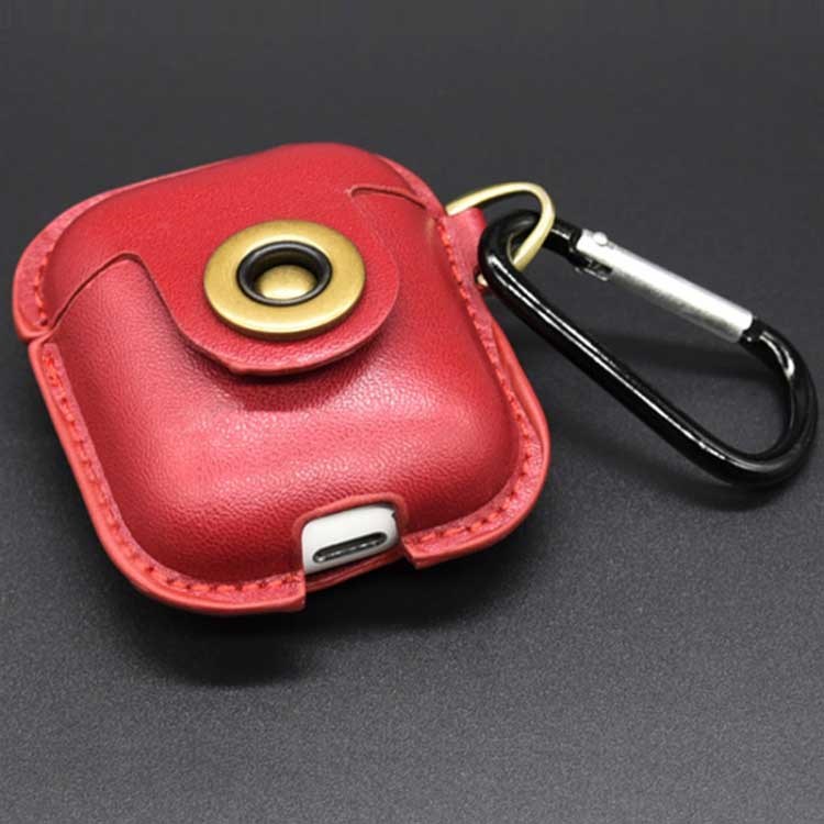 De AirPods-hoes heeft een veilige knoopsluiting en een praktische karabijnhaak waarmee je hem aan een rugzak, tas of sleutelhanger kunt bevestigen.