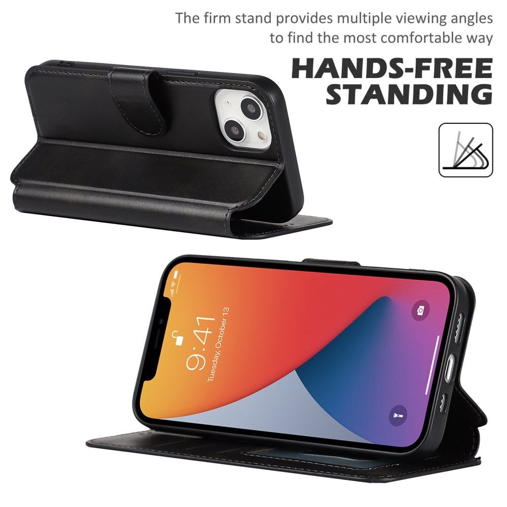 All-round bescherming PU lederen Stand case portemonnee shell voor iPhone 13 - zwart