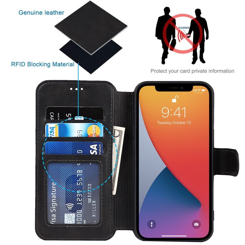 Rondom bescherming PU-leer Stand Wallet Shell voor iPhone 13 6.1 inch - Zwart