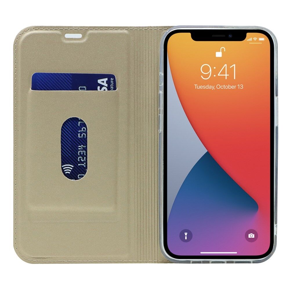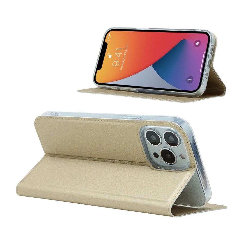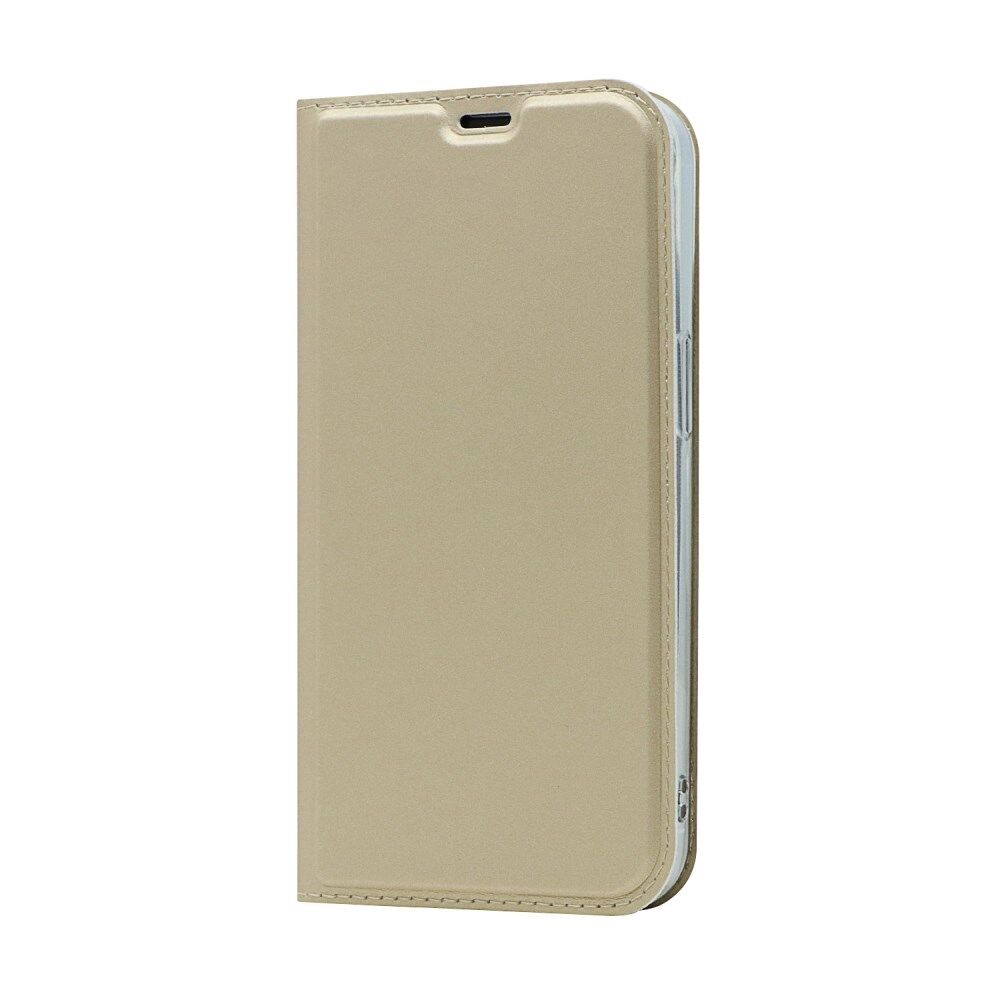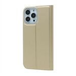 All-round bescherming Auto-absorberend Fashion effen kleur kaartsleuf Schokbestendig lederen telefoonhoesje met Stand voor iPhone 13 Pro - goud