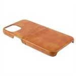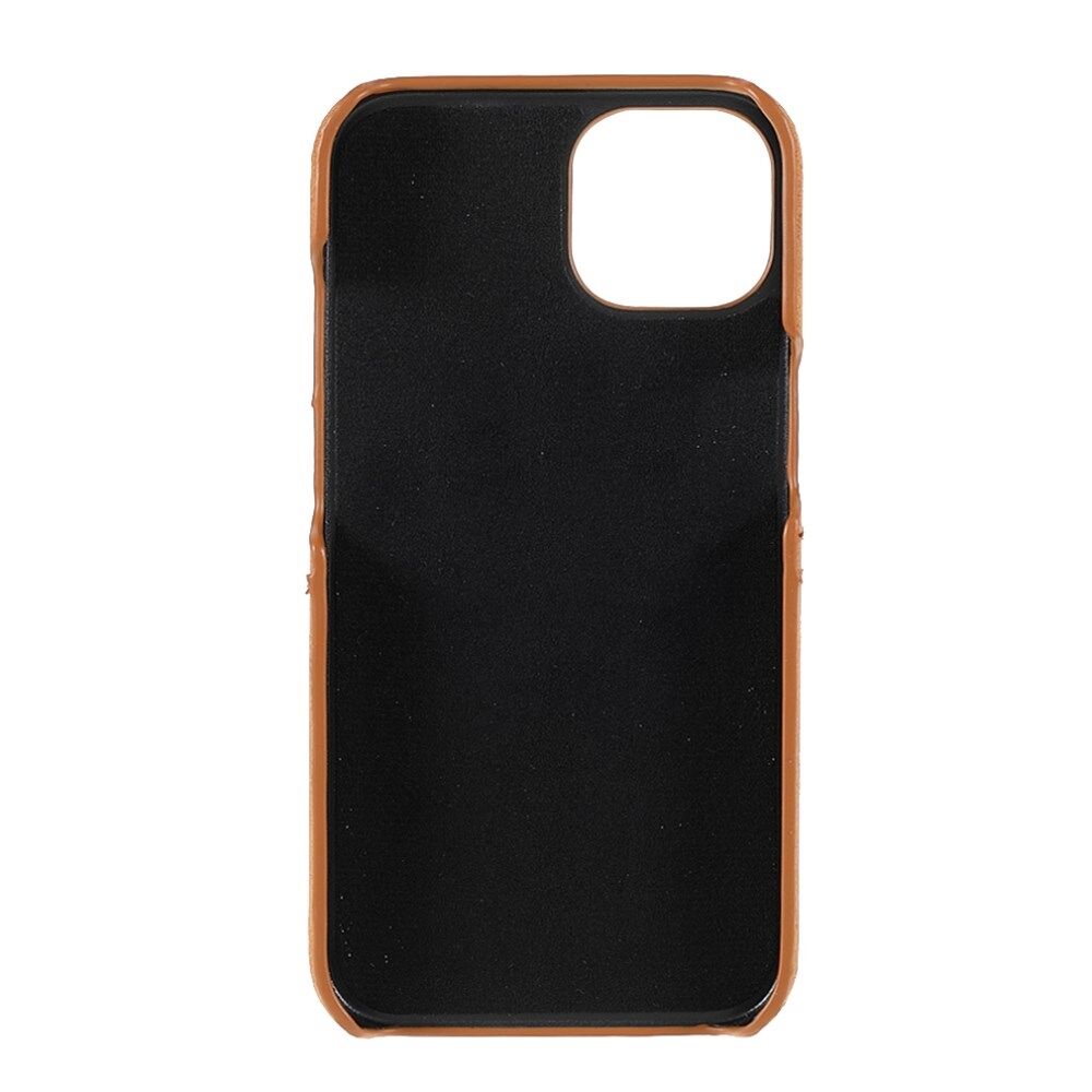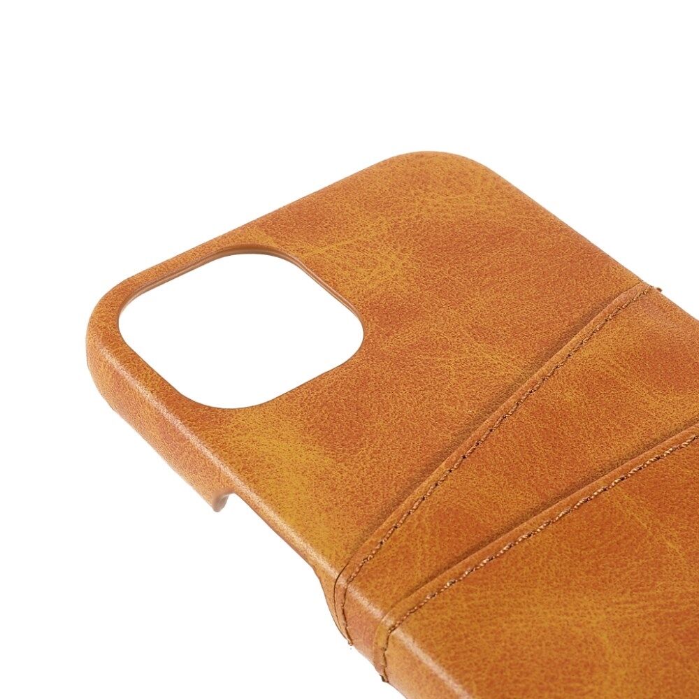 Allround beschermende, met leer gecoate pc-achtertelefoonhoes met dubbele kaartsleuven voor iPhone 13 mini - Bruin