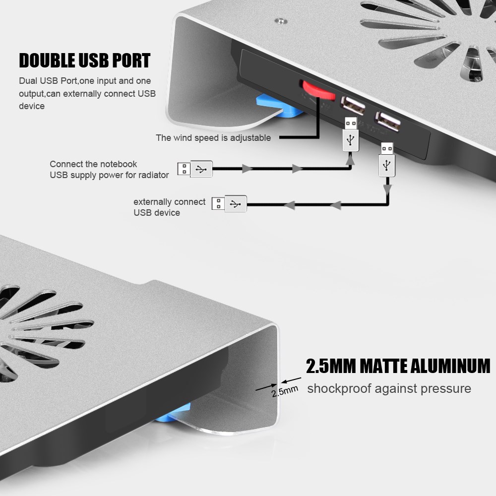 1 x aluminium laptoptafelstandaard met dubbele USB en koelsysteem