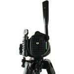 Dit camerastatief heeft een geïntegreerde waterpas en een 3-weg draaikop, die snel en eenvoudig te bedienen is. Het ontwerp is opvouwbaar met antislip stevige poten die verstelbaar zijn tot een hoogte van 130 cm.
