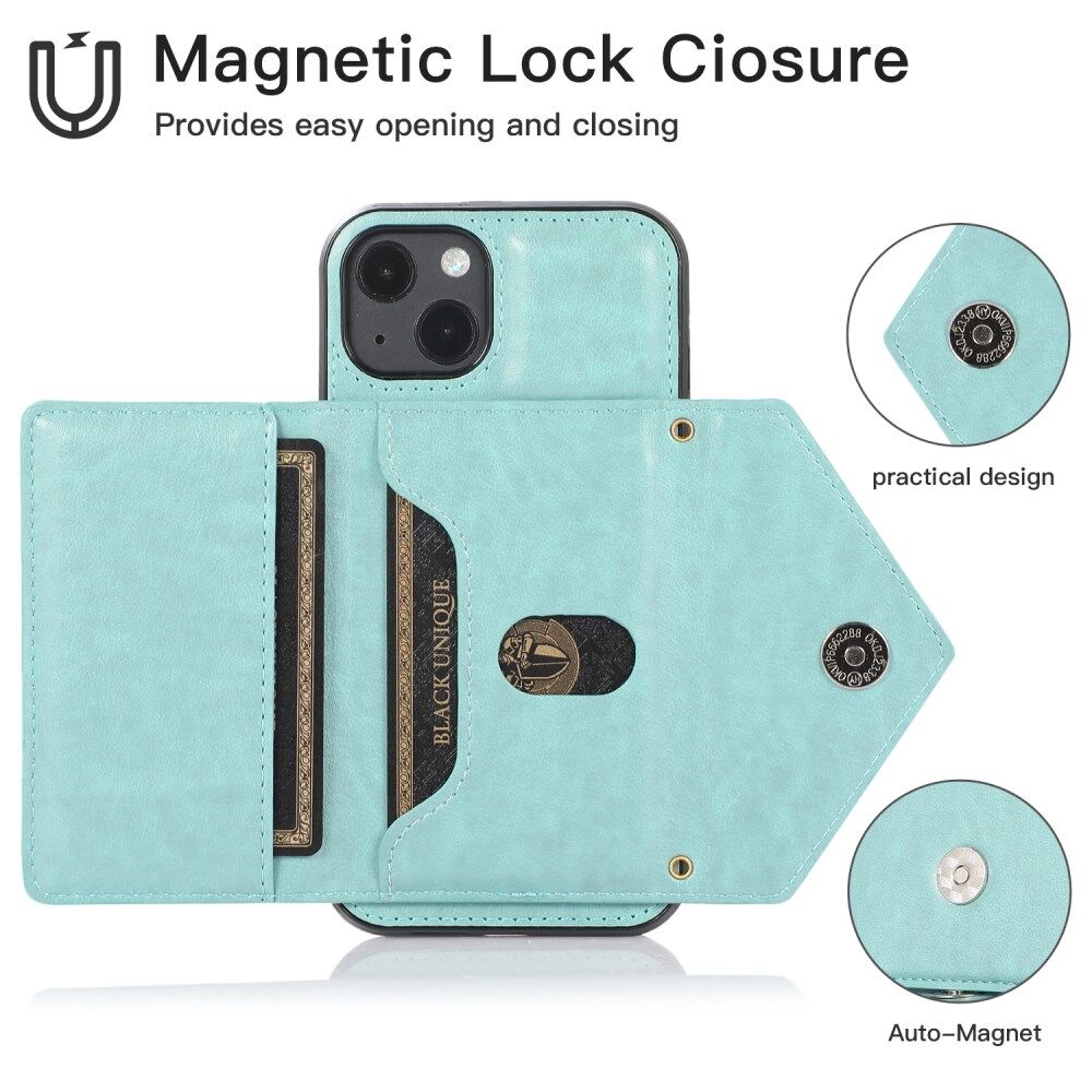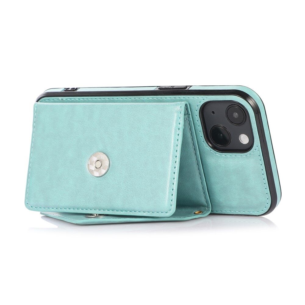 Anti-collision PU-leer gecoat PC+ TPU standaard hybride hoesje met kaartsleuf voor iPhone 13 - mintgroen