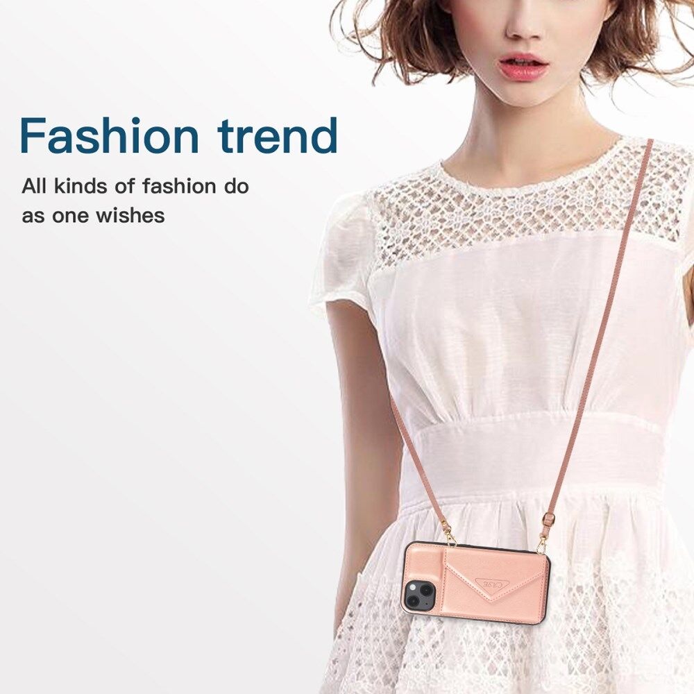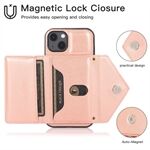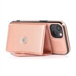 Anti-collision PU-leer gecoat PC+ TPU standaard hybride hoesje met kaartsleuf voor iPhone 13 - roségoud