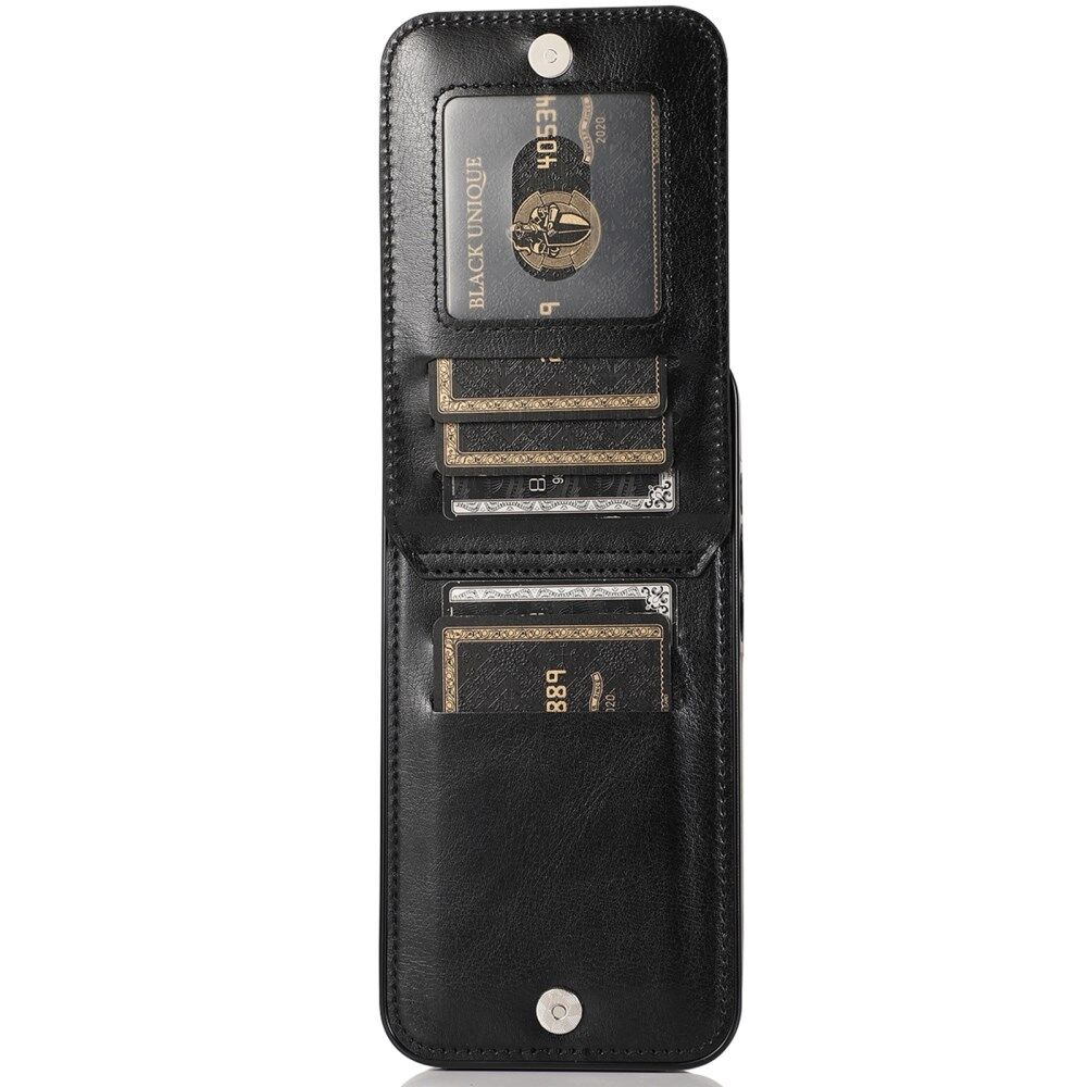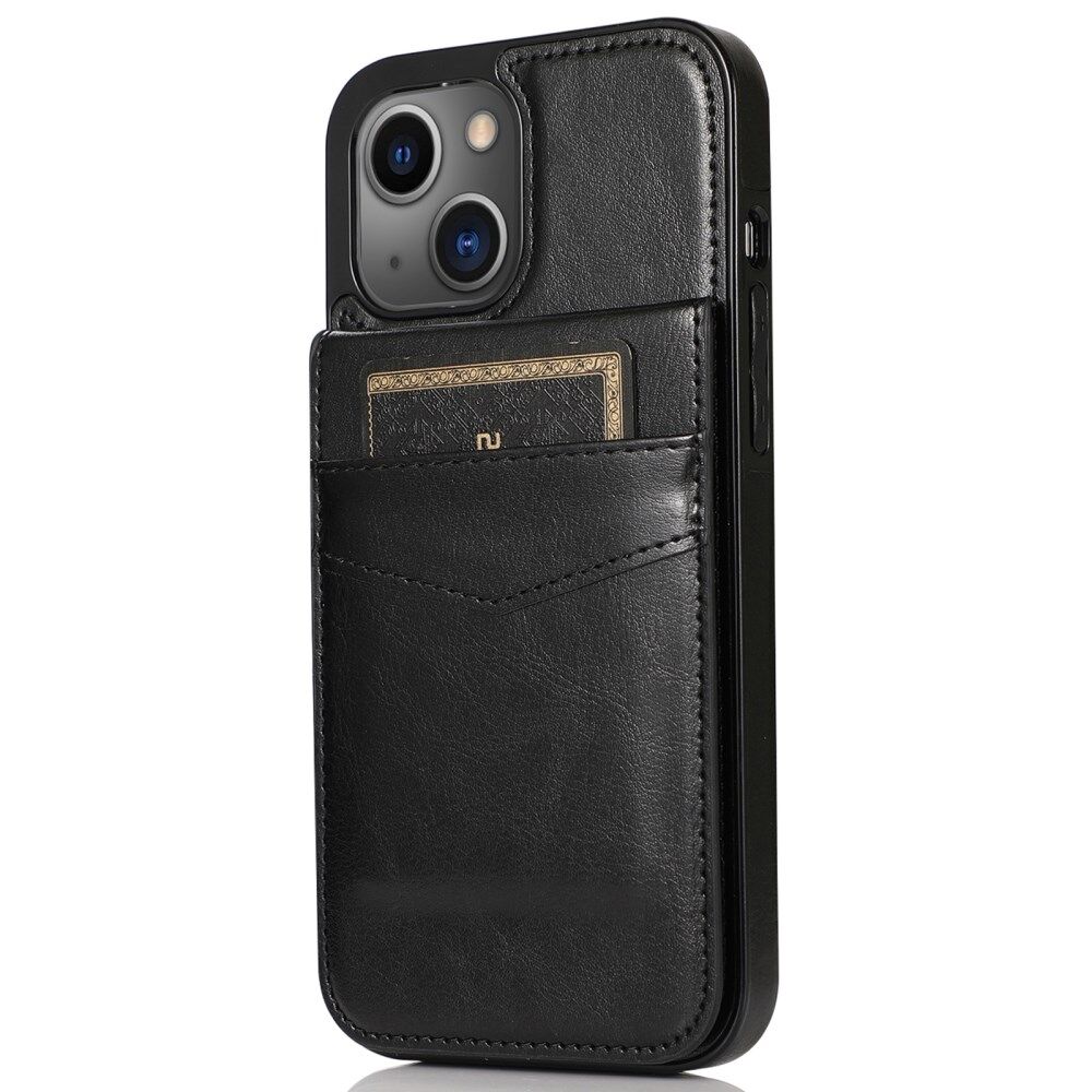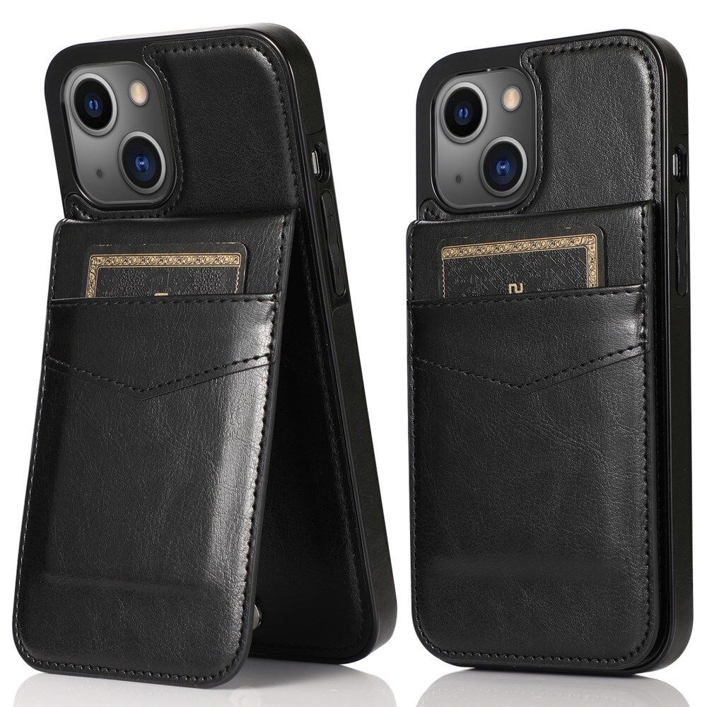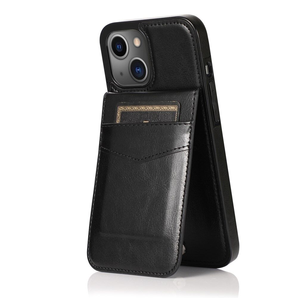 Anti-kras PU-leer gecoate TPU-telefoonhoes met ondersteuning en meerdere kaartsleuven voor iPhone 13 mini - Zwart