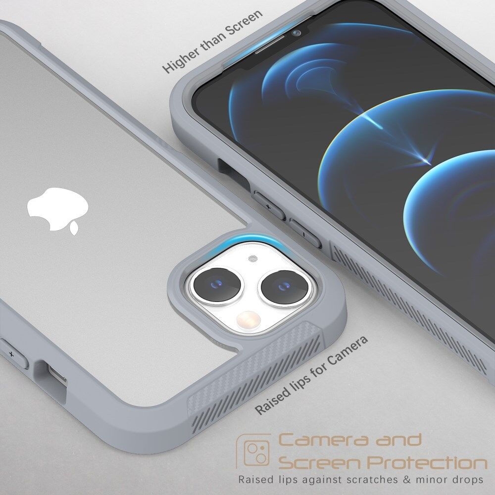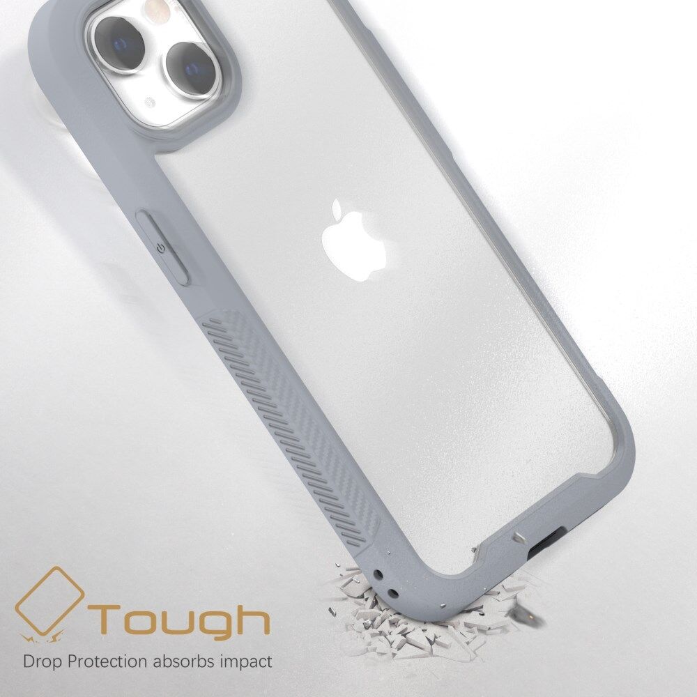 Antislip verdikte TPU-framebumper + pc-achterpaneel Hybride telefoonhoesbeschermer voor iPhone 13 - grijs