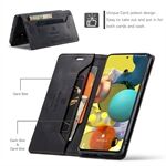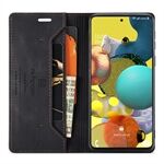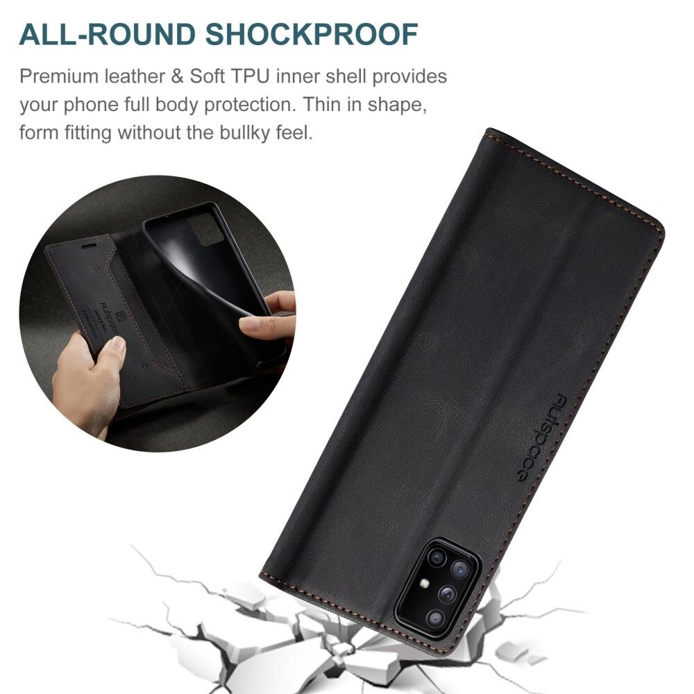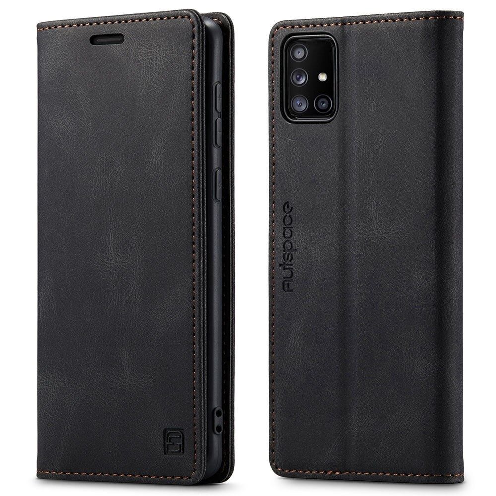 AUTSPACE A01-serie voor Samsung Galaxy A51 4G SM-A515 PU lederen beschermhoes, algehele bescherming RFID-blokkering Magnetische sluiting Vintage Frosted Wallet Stand Flip Cover - Zwart