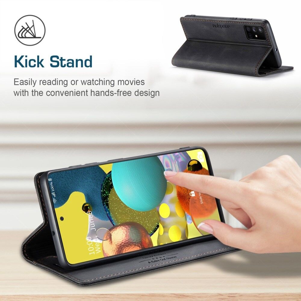 AUTSPACE A01-serie voor Samsung Galaxy A51 4G SM-A515 PU lederen beschermhoes, algehele bescherming RFID-blokkering Magnetische sluiting Vintage Frosted Wallet Stand Flip Cover