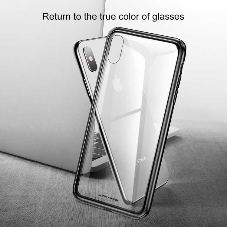 Baseus Cover met Gehard Glas, Achterkant en Schokbestendige Randen in TPU voor iPhone XS Max - Zwart