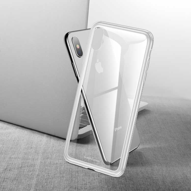 Baseus cover met achterkant van gehard glas en schokbestendige randen in TPU voor iPhone XS Max - Wit
