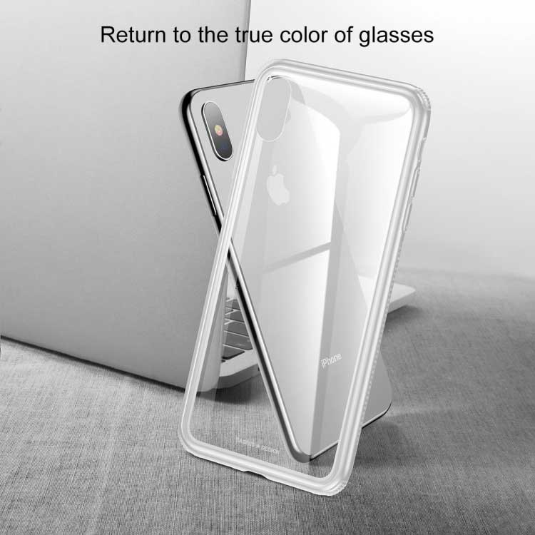 Baseus-hoes met achterkant van gehard glas en schokbestendige randen van TPU voor iPhone XS Max