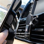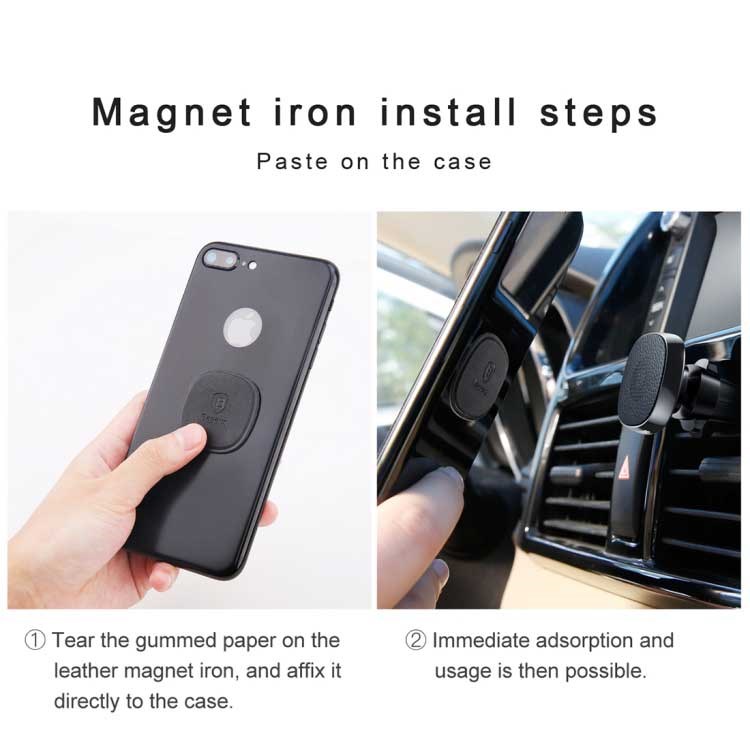 Hij wordt eenvoudig in het luchtkanaal van de auto gemonteerd en de dunne magnetische plaat met lijm wordt op de achterkant van de telefoon of aan de binnenkant van de telefoonhoes geplaatst.