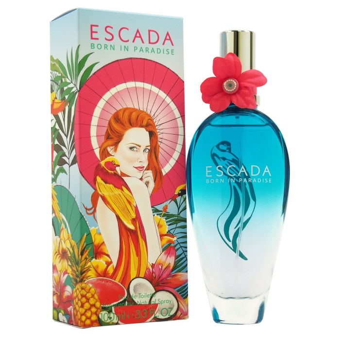 Born in Paradise van Escada is een bloemige fruitige geur voor vrouwen, gelanceerd in 2014. Het bevat watermeloen, guave, groene appel, kokosmelk, ananas, muskus, sandelhout en cederhout.