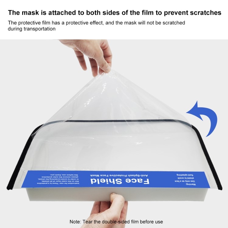 Het beschermende schild bedekt het hele gezicht en is gemakkelijk te gebruiken. Het past met zijn anatomische ergonomische ontwerp voor iedereen en beschermt de ogen, neus en mond.