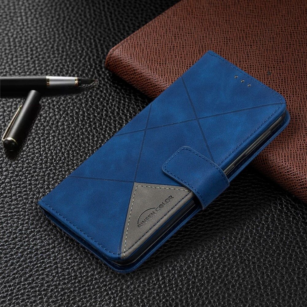 BF05 Geometrische Textuur Lederen Portemonnee Stand Cover Case voor Samsung Galaxy A20e / A10e - Blauw