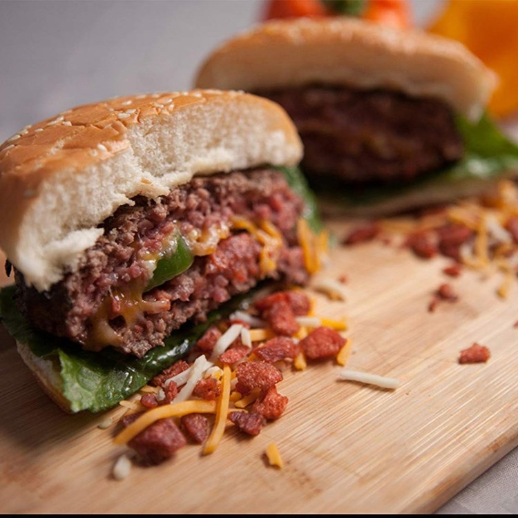 De steakvormer is eenvoudig in gebruik en produceert gelijkmatig gebakken steaks.