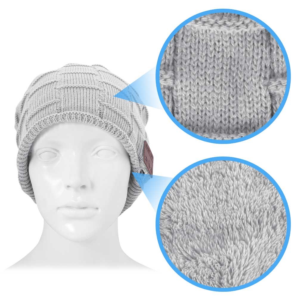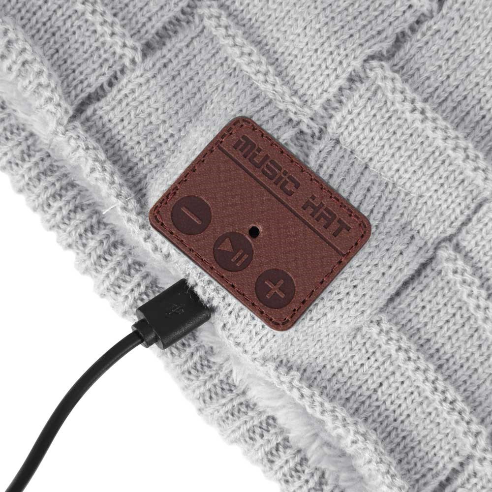 Muziekmuts met ingebouwde draadloze Bluetooth-headset! Als het een dagelijks gevecht is met de hoed en koptelefoon, is deze hoed de oplossing. Het heeft een ingebouwde draadloze Bluetooth-headset en je bent verlost van het gedoe van de kabel. Je verbindt je smartphone of andere speler met bluetooth functie, en je kunt zowel telefoneren als naar muziek luisteren terwijl de telefoon in je tas zit. Je bedient de muziek en oproepen via een bedieningspaneel aan de zijkant van de muts. Er wordt een USB-kabel meegeleverd en u moet niet vergeten deze op te laden zodat deze klaar is voor gebruik. De muts is van acryl gebreid en gevoerd met pluche, waardoor hij super zacht en warm is. De muts is one size, extra lang en door iedereen te gebruiken.