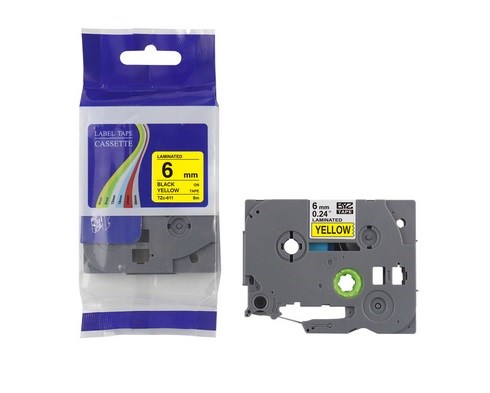 Hoge kwaliteit TZ 611 6mm x 8m zwart op gele tape voor Brother P-Touch labelprinter