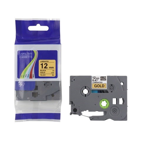 Brother Compatible TZc-831 Black Font Gold Tape 12 mm x 8 m