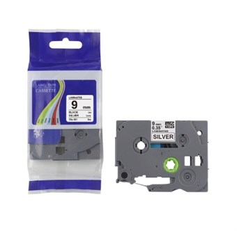 Hoge kwaliteit TZc-921 - Zwarte tekst op zilveren tape 9 mm x 8 m Voor Brother P-Touch-labelprinter