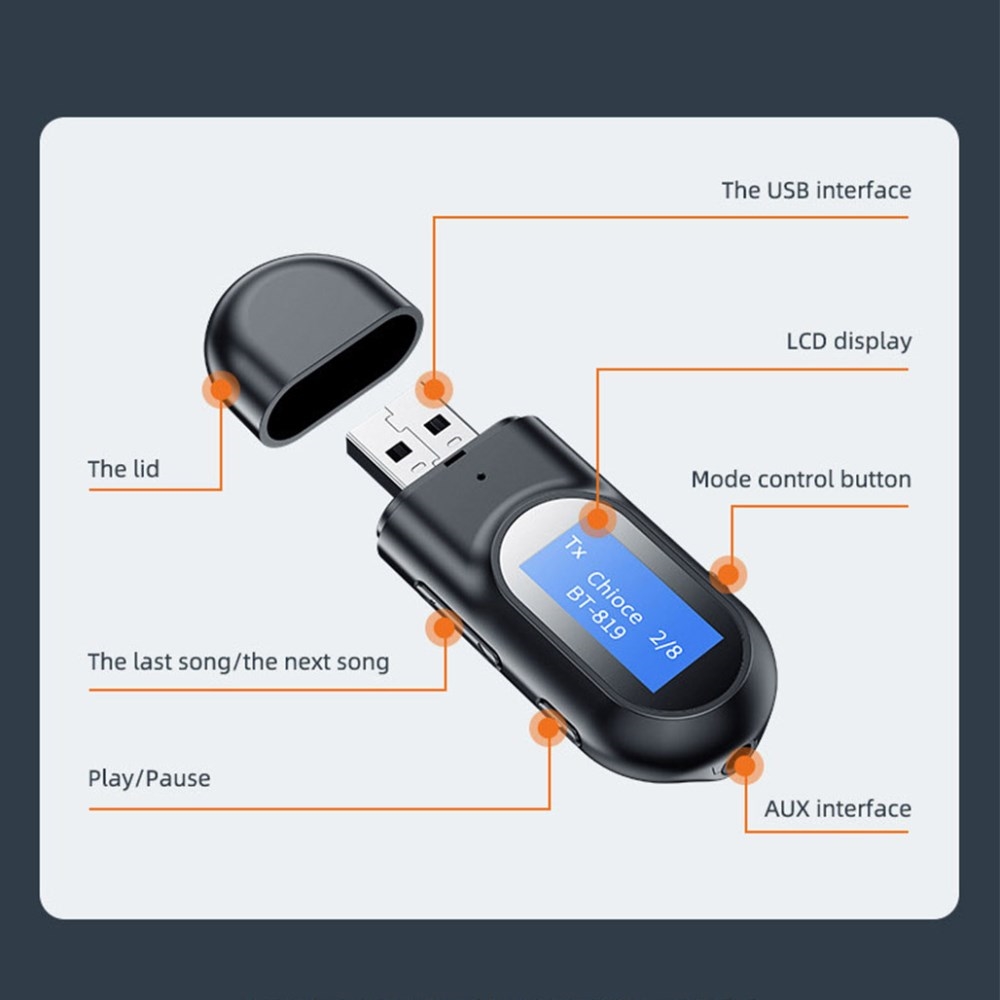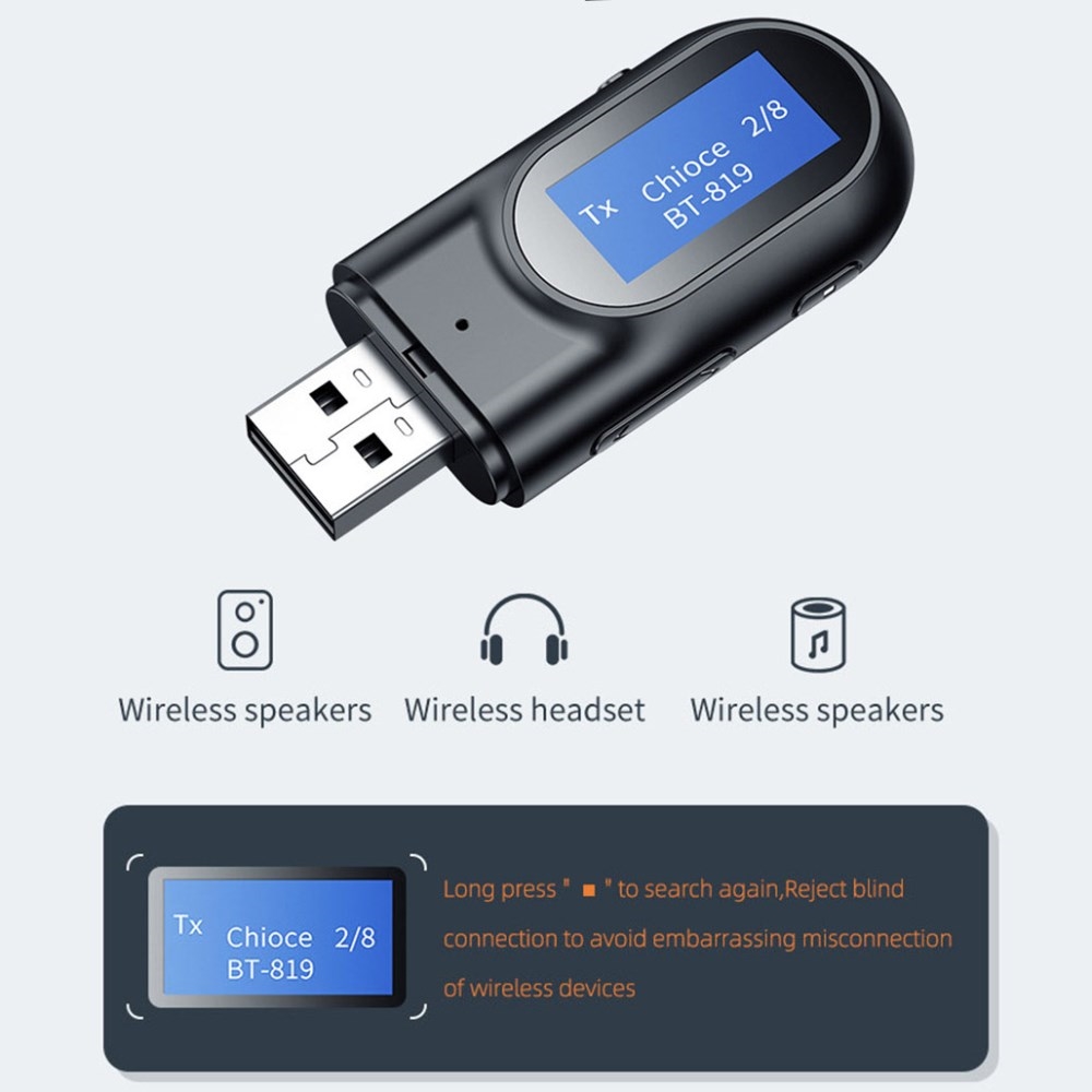 BT-17 USB Bluetooth 5.0 Draadloze Zender Ontvanger LED Digitale Display Muziek Oproep Audio Adapter (Geen Certificering)