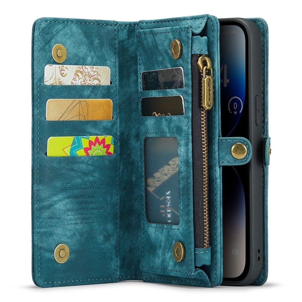 CASEME 008 Serie Stand Multifunctionele Portemonnee TPU + Splitleer 2-in-1 Telefoonhouder Shell voor iPhone 13 Pro 6.1 inch - Blauw