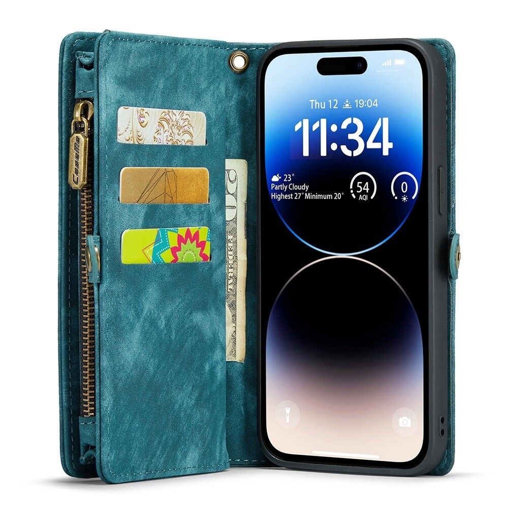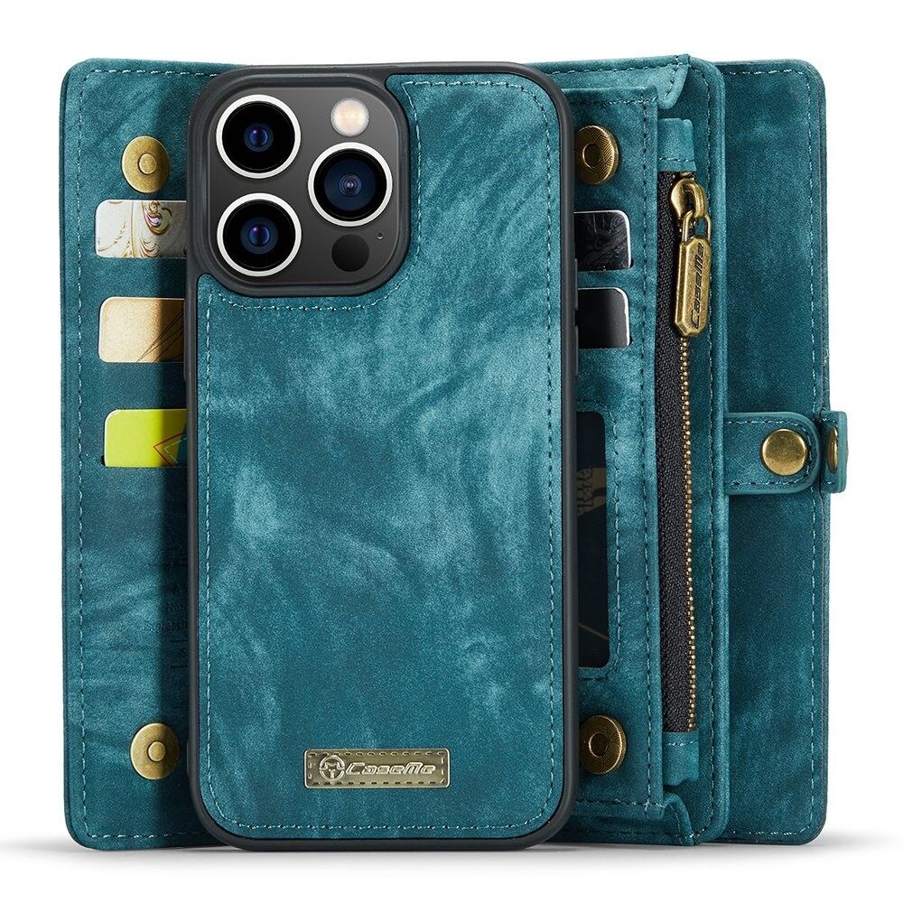 CASEME 008 Series Stand Multifunctionele Portemonnee TPU + Split Leer 2-in-1 Telefoon Stand Shell voor iPhone 13 Pro - Blauw