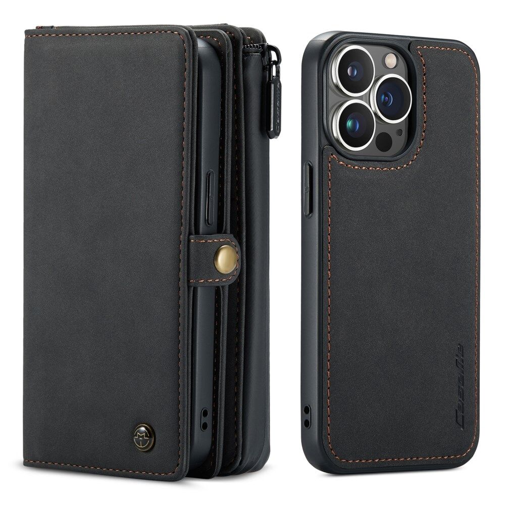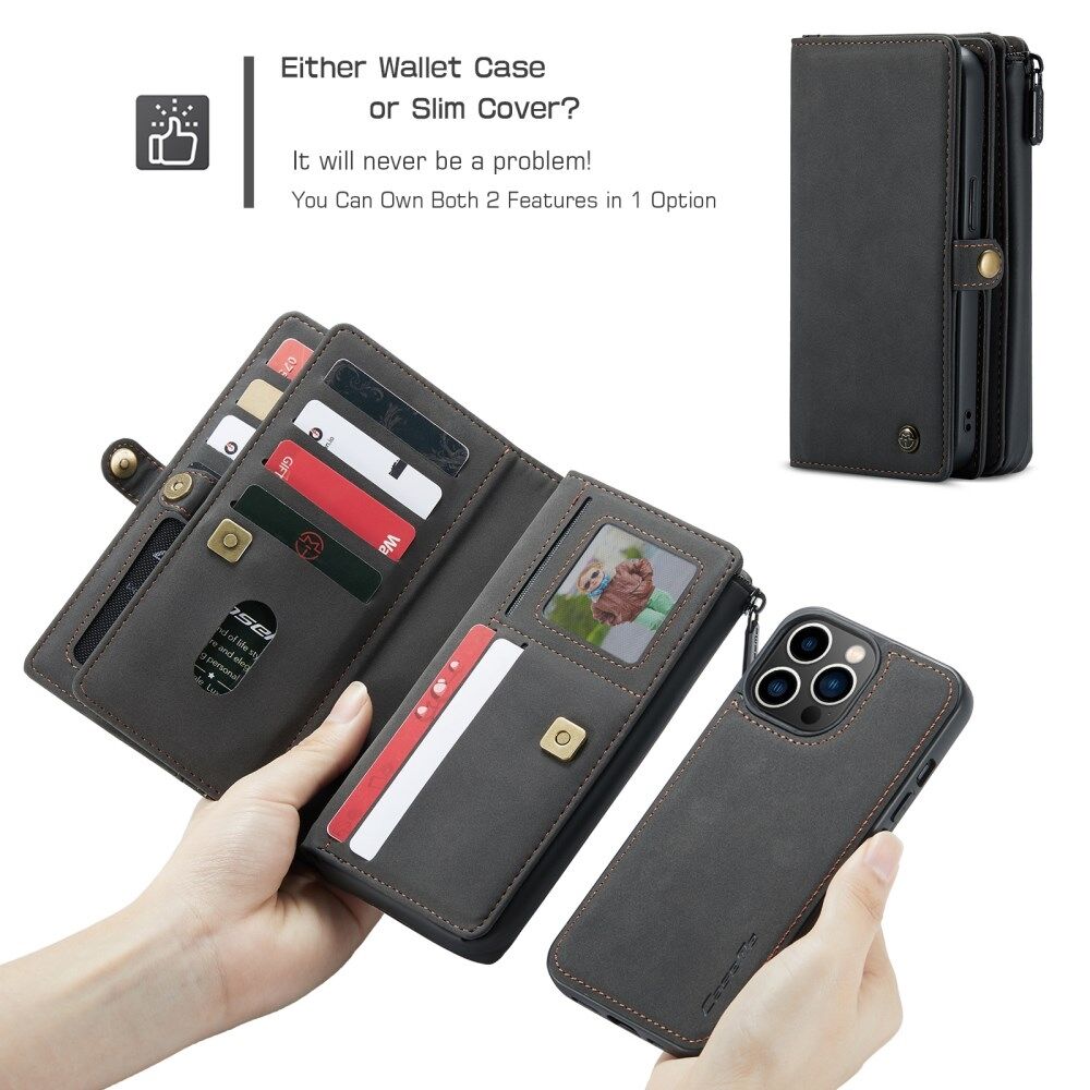 CASEME 018-serie Multi-Slot Design Matte Surface Wallet Stand Leren 2-in-1 Afneembare Telefoonhoes voor iPhone 13 Pro - Zwart