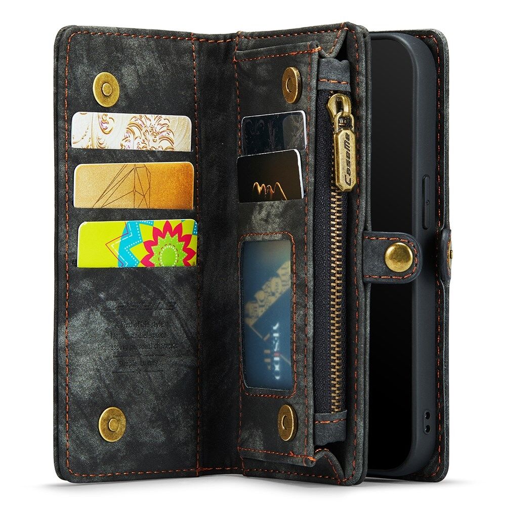 CASEME 2-in-1 Portemonnee met meerdere sleuven Vintage splitlederen hoes voor iPhone XR 6,1 inch