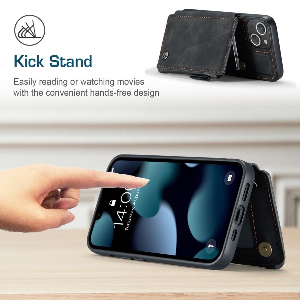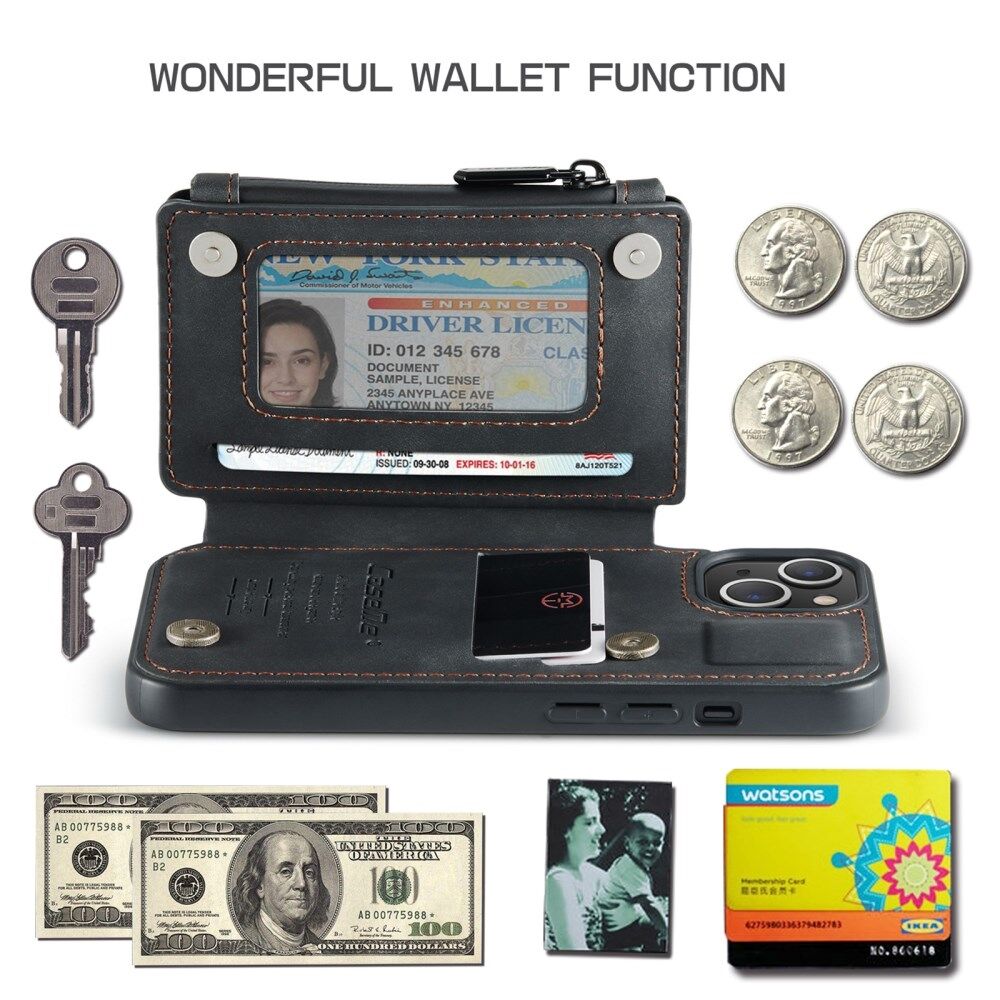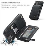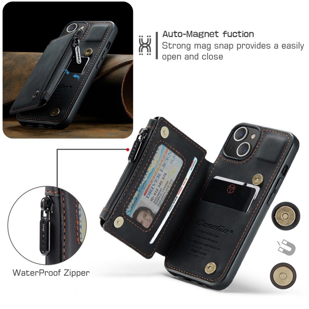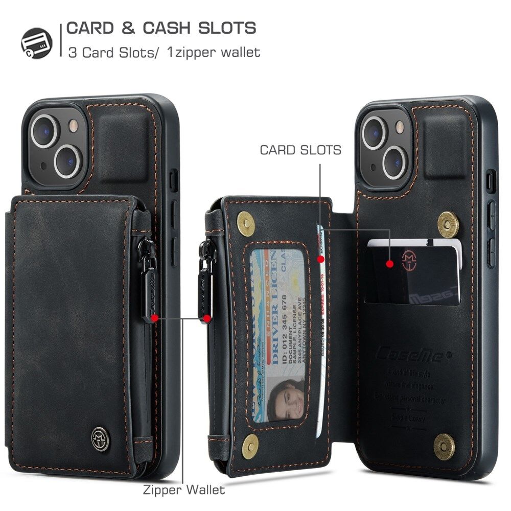 CASEME C20-serie Schokbestendig Anti-diefstal Ritsvak Portemonnee Ontwerp PU-leer en TPU Achterkant Telefoonhoes voor iPhone 13 - Zwart