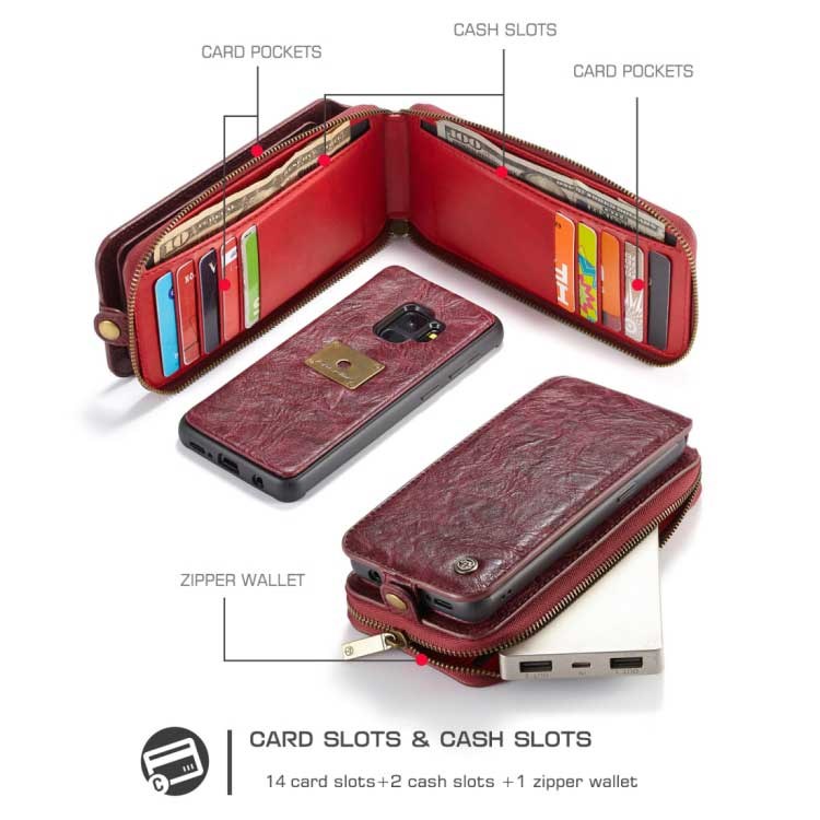 CaseMe Premium Leren Portemonnee met Magnetische Cover voor Samsung Galaxy S9 - Rood