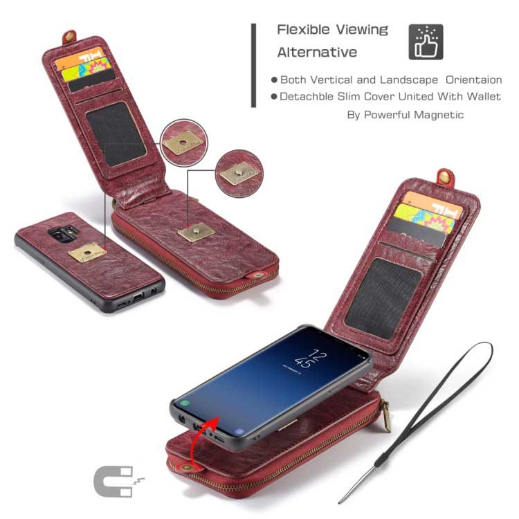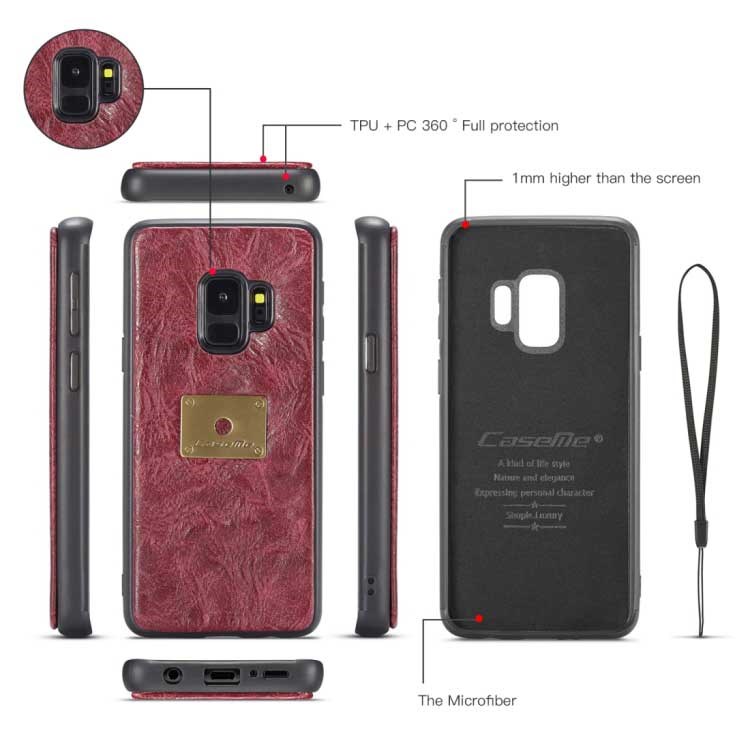 Samsung Galaxy S9 CaseMe Premium lederen portemonnee met magnetische hoes.